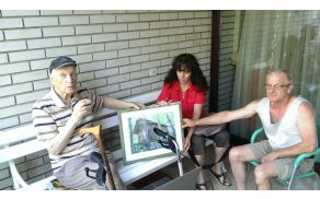 Na sončen julijski dan je del članov društva HUD Karel Barjanski v domu starejših občanov na Vrhniki s posebnim namenom obiskal našega sovaščana Franca Lebna. Ure smo mu krajšali tudi že kdaj prej in še jih bomo, a na ta dan smo mu podarili sliko Jožeta Stražišarja, člana naše likovne sekcije. Ta je zanj naslikal brunarico nad petim slapom, ki jo je gospod Franc s prijatelji zgradil pred več kot pol stoletja.