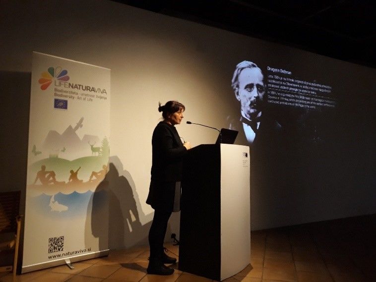 Po uvodnih pozdravih smo si ogledali krajši film o biološki raznolikosti v Sloveniji, ki je nastal v projektu LIFE NATURAVIVA, Umetnost življenja. Naravovarstvena svetovalka Krajinskega parka Ljubljansko barje, Barbara Vidmar, je predstavila komunikacijski projekt, preko katerega predstavljamo pomen biodiverzitete na delavnicah, vodenjih, prireditvah, v publikacijah … Ključno sporočilo, ki ga želimo predati s tem projektom je, da je umetnost življenja iskanje ravnovesja med izkoriščanjem in ohranjanjem. Zelo konkretno so to sporočilo poskušali udejanjiti v projektu Ljubljanica povezuje. Ljubljanica je pomembna tako za človeka kot za živalske in rastlinske vrste, ki živijo v in ob njej. Zato si zasluži, da jo vedno znova odkrivamo in se sprašujemo po upravičenosti posegov v in ob njej. Reka Ljubljanica ni izoliran življenjski prostor. Na njen utrip vpliva celotno porečje. Vrste, ki živijo v reki Ljubljanici prav tako niso omejene le na to reko. Človek je že od nekdaj izkoriščal vodne vire in z