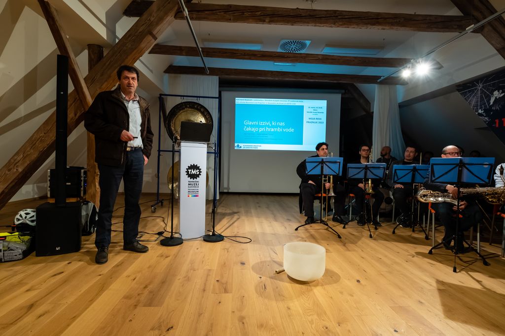 Tako so organizatorji HUD Karel Barjanski v sodelovanju s Tehničnim muzejem Slovenije, Krajinskim parkom Ljubljansko barje, ZKD Vrhnika-Borovnica-Log-Dragomer in Slovenskim društvom za zaščito voda tudi letošnjega 22. marca z besedo, glasbo in zvoki opozorili na pomen vode, vodotokov in stoječih voda. Prisluhnili smo zvočni kopeli v izvedbi Karla Vizka in Big Bandu Vrhnika, program pa je povezoval Borut Dolšak.