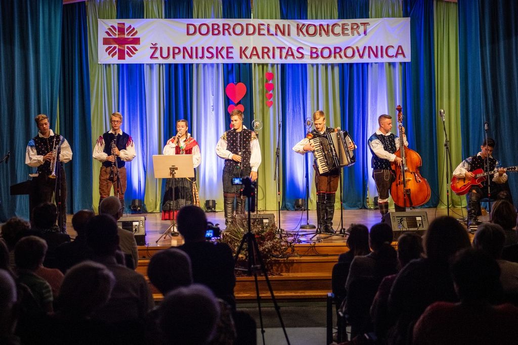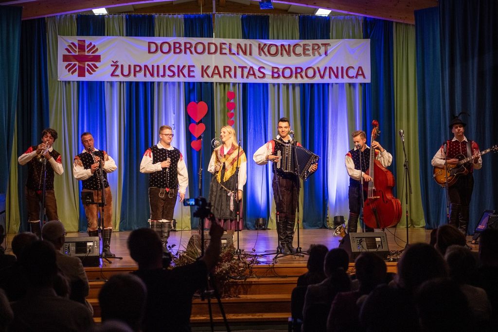 Raznolik program pa je obetala pisana druščina nastopajočih. Za ljudsko pesem, narodno zabavno glasbo in plesni program so poskrbeli Moški pevski zbor Štinglc, Žlahtne babe, Horjulski kvintet, Plesna skupina Žurerke, Lukavi Luka in Šmentane muhe, Vokalna skupina Virilis, Mladinski pevski zbor Osnovne šole Borovnica ter Ansambel Škof. Slednji so z legendarno pesmijo »Ostanimo prijatelji« še povzeli tokratno sporočilo koncerta in solidarnost, s katero smo se Slovenci po poplavah zopet izkazali.