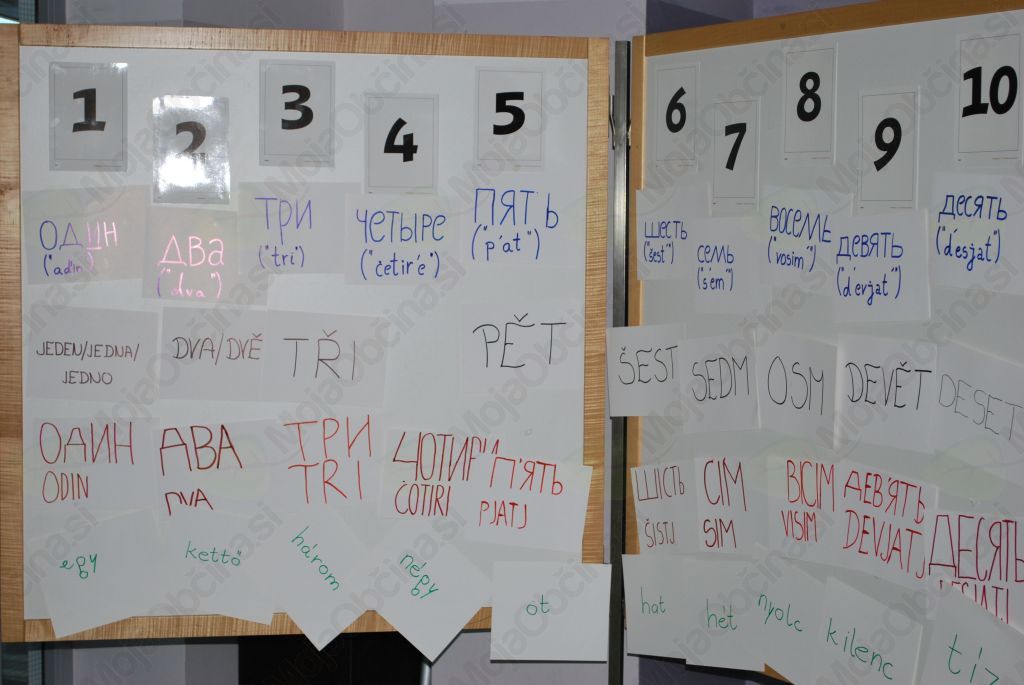 Tisti popoldan se učenci niso učili angleščine, nemščine in španščine (to so namreč jeziki, ki jih sicer poučujemo na naši šoli). V goste smo povabili nekatere naše sodelavke (iz šole in vrtca), znanke in mame naših otrok, ki so nam z veseljem predstavile štiri malo manj običajne jezike: Špela Repar ČEŠČINO, Violeta Leben UKRAJINŠČINO, Klementina Šraj MADŽARŠČINO in Mihaela Wabra Kucler RUŠČINO.