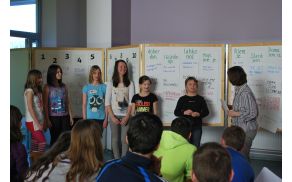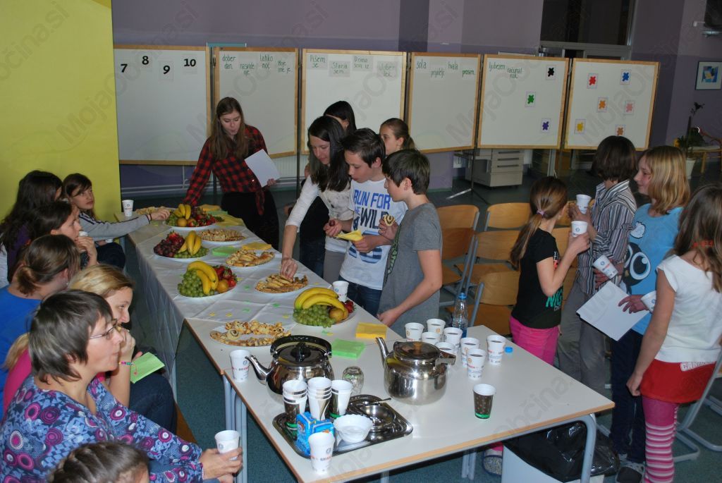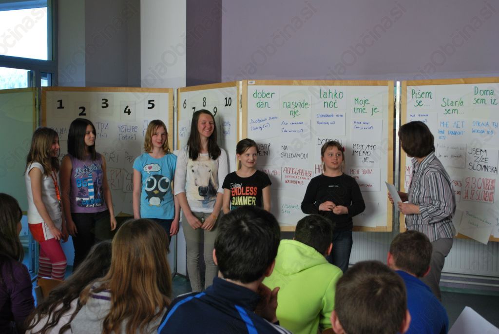 Kako je potekalo naše druženje? Najprej so se učenci dve šolski uri učili osnovnega besedišča v navedenih jezikih. Naučili so se šteti do deset, osnovnih barv ter osnovnih izrazov, npr. dober dan, nasvidenje, moje ime je, pišem se, prihajam iz ... Po napornem učenju se je prilegel odmor za pijačo in slaščice, ki so nam jih pod mentorstvom učitelja Simona Lukana pripravili člani slaščičarskega krožka. Sledila je še zabavna predstavitev (predvsem z lomljenjem jezikov) vsega, kar so se učenci naučili.