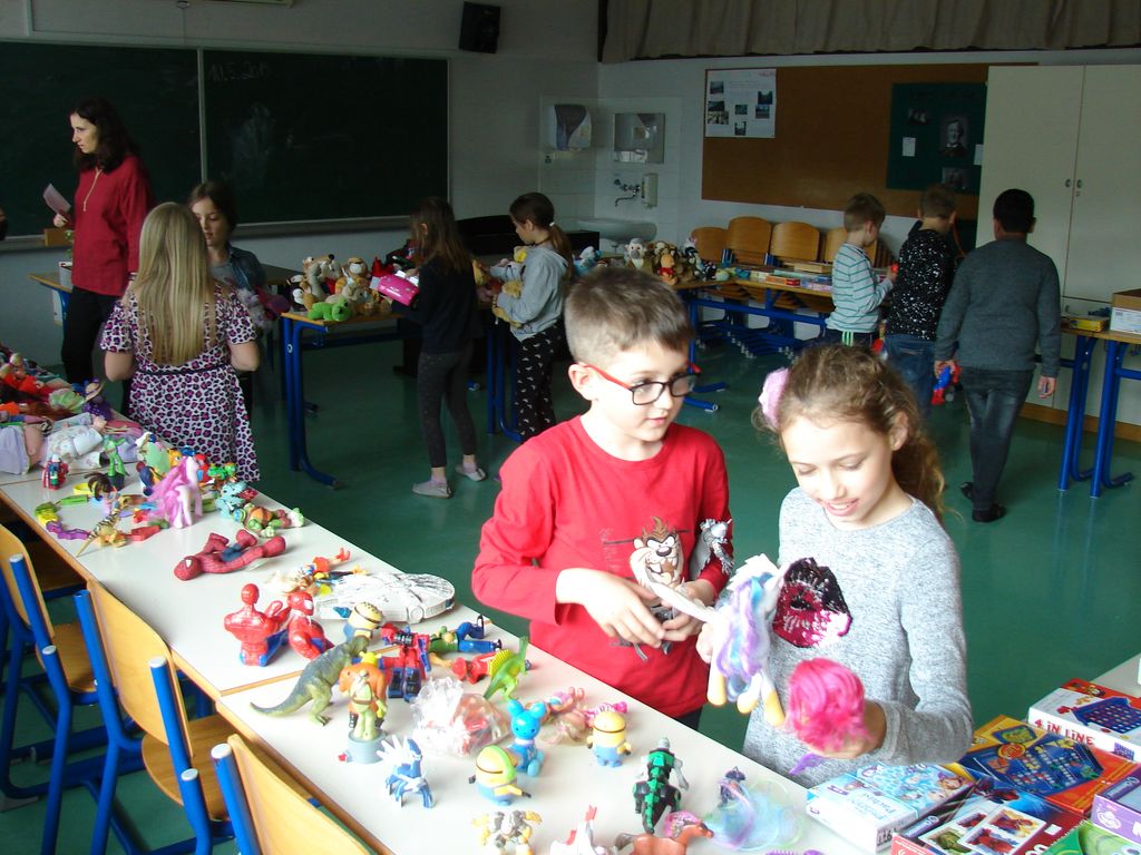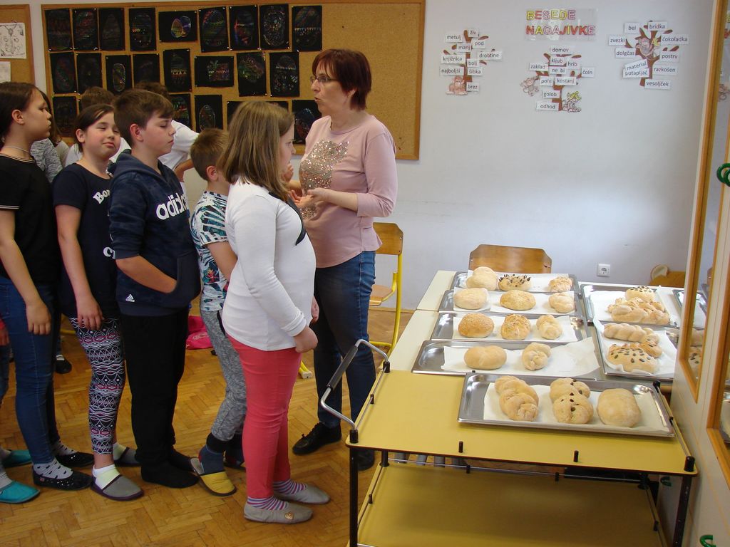 Tema prvih razredov je bila travnik in živali. Učenci so se izmenjevali na treh prizoriščih, eno izmed njih sta pripravila g. Palčič in g. Erčulj s svojimi številnimi eksotičnimi plazilci. Učenci drugih razredov so iz odpadne embalaže izdelali lonček za svinčnike in lonček, v katerega so posadili rastlino. V tretjih razredih so izdelali lonček za svinčnike, glasbila, igrače, izdelali pa so tudi sivkino glicerinsko milo. Četrte razrede je letos obiskalo društvo Bioexo in učencem predstavilo plazilce, kot so legvan, piton, gož, nato pa so izdelali še kuščarja s tehniko origami. Učenci petega razreda so k sodelovanju tudi letos povabili g. Leona Kernela iz Srednje gozdarske šole Postojna, ki na poglobljen način učencem predstavi drevesa, gozd, njihov pomen danes in v preteklih zgodovinskih obdobjih ter običaje in obrede, povezane z njimi. Poslušati g. Kernela in biti pri tem čisto pri miru ne bi bilo problem tudi po več ur, menijo učenci. V petem B so se odločili preizkusiti se v peki domačega kruha. Ga. Karmen Turšič je učence vodila skozi cel postopek od spoznavanja različnih vrst moke, kruha, kako kruh zamesimo, kdaj in kako dodamo zrna, do peke, za katero so poskrbeli v naši kuhinji. Proti koncu dneva je po hodnikih dišalo po sveže pečenem kruhu. Nekateri učenci so pletenico, hlebček, štručko odnesli domov, nekatere pa je mamljivi vonj premamil in so odškrtnili delček, da so poskusili, kako je kruh uspel. Po šoli pa ni dišalo samo po kruhu, v spodnjih prostorih šole je dišalo po sveže nažaganem lesu. Učitelj Klemen Jevnikar je s skupino učencev izbirnega predmeta Obdelava gradiv – les izdeloval ptičje krmilnice in valilnice, ki jih bomo v prihodnjih dneh namestili na drevesa na Košutovem vrtu, kjer imamo tudi svoj šolsko eko vrtiček. Novost letošnjega ekodneva je bila izmenjevalnica igrač za učence razredne stopnje. Učenci so prinesli svoje rabljene igrače, ki so jih želeli zamenjati z igračami svojih sošolcev. Nastala je prava pisana trgovina igrač, več kot štiristo se jih je nabralo in učenci so zavzeto iskali pravo zase. Seveda smo morali poiskati tudi čas, ko se je lahko vsak s svojo novo igračo tudi malo poigral.