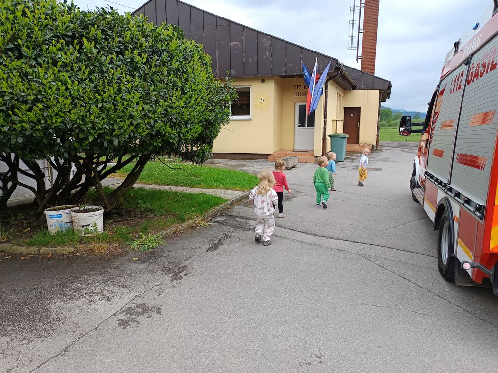 pred gasilskim domom Breg Pako. Nato smo se vrnili v vrtec, se obuli in oblekli