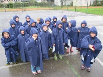 V pustem dnevu smo se v skupini Žabice iz enote Mavrica (centralni vrtec) odločili, da gremo na sprehod v dežnih plaščih in škornjih.