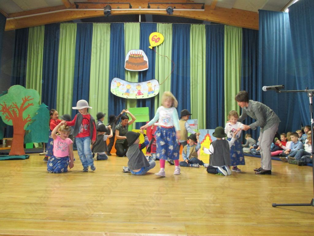 V teh 60 letih se je res veliko dogajalo, pestro pa je bilo tudi v tednu od 12. do 16. maja, ko smo tudi z otroki praznovali "rojstni dan" našega vrtca. V ponedeljek smo v vrtcu v vseh skupinah organizirali likovne delavnice, na katerih so otroci pokazali svojo ustvarjalnost. Popoldne pa smo starše, otroke, upokojene delavce vrtca in predstavnike občine povabili na slavnostno prireditev, na kateri je vrtčevski zborček Miš-maš zapel nekaj pesmic, Palčki so zaplesali ljudski ples in zapeli pesmico, Miške so povedale deklamacijo o vrtcu, otroci iz vrtčevskega dramskega krožka so zaigrali dramatizacijo Hišica iz kock, predstavili pa so se tudi učenci glasbene šole. Po prireditvi so bili gledalci povabljeni v prostore vrtca na razstavo fotografij iz zgodovine vrtca ter na odprtje naše nove pridobitve, senzorne sobe.