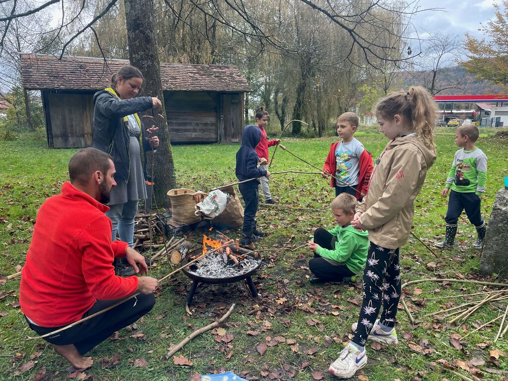 Letos smo tudi med krompirjevimi počitnicami veselo ustvarjali v naravi. Mavčeva dolina nas je pričakala v čudovitih jesenskih barvah in za nekaj časa postala pravo malo ustvarjalno središče. Najprej smo ozavestili, da ima želod v sebi veliko moč, saj lahko zraste v mogočno drevo. Prav zato je bil odlična izbira za izdelavo amuleta. Nekateri otroci so si izdelali zapestnice, drugi prikupne živalice, največ navdušenja pa je požela izdelava loka. Otrokom je bila ta naloga izjemno zanimiva. Ko so si izdelali lok, je bilo treba preizkusiti še osredotočenost in natančnost — in pri tem so bili odlični. Seveda ni dogodka brez ognja, ki nas je tokrat lepo pogrel in nam nudil kurišče, na katerem smo si spekli hrenovke. S tem smo zaključili letošnji sklop aktivnosti za otroke. Po odzivih sodeč pa je popolnoma jasno: naslednje poletje se zagotovo spet srečamo. Iskrena hvala vsem staršem za zaupanje.