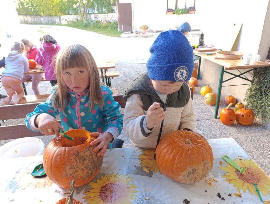 Med krompirjevimi počitnicami so na Ekološki kmetiji Pr’ Laškarju v Zabočevem potekale Vesele urice. V ponedeljek, 27. 10., je potekal Lov na figurice, 28. 10. pa Izrezovanje buč. Delavnici sta trajali od 9. do 12. ure. Kar 16 otrok je tako počitniška dopoldneva preživelo na svežem zraku in ob tem so uživali.