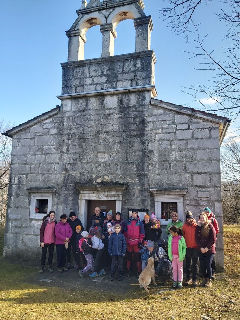 Hodili smo nad skalnimi pečinami. Pod nami je bila gručasta vas Črni Kal in železnica. Edino v majhno jamo smo se spustili pod pečino. V jami so se bleščali preprosi kapniki. Nekateri planinci so v njej, pa tudi zunaj, malo poplezali. Pred jamo smo pomalicali. Tam sem pestovala dojenčico Iris, staro 3 mesece. Kako me je gledala. Take stvari ne pozabiš. ''Pocortala'' sem tudi njeno sestrico Lejo. Z Lejo sva kasneje malo zatavali po svoje. Pogovarjali sva se o letalih in letenju in sva spregledali markacijo. Kar naenkrat ni bilo nikogar nikjer. Leja je modro ugotovila, da so se njeni starši izgubili. Ustavili smo se tudi pri cerkvi Marije Snežne.