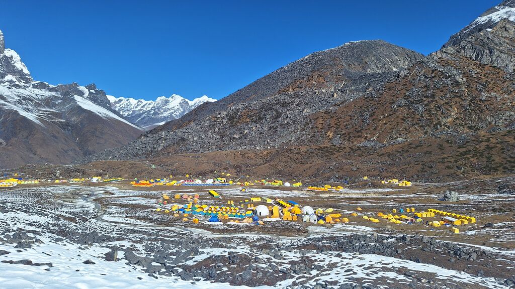 Bazni tabor je situiran na vznožju gore na višini 4600 m, ki je bil