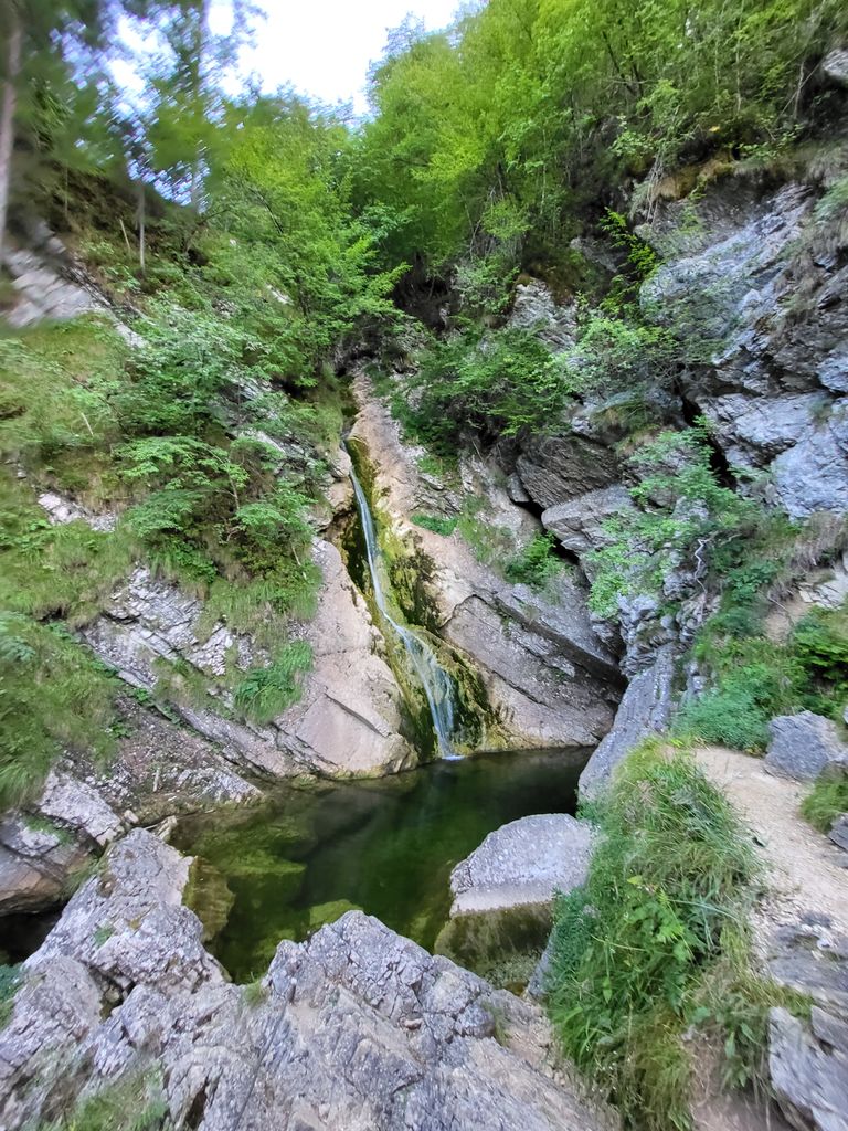 Četrti slap, ki velja za najlepšega med slapovi, saj voda prosto pada v enem pramenu in se v široki pahljači razbije na štirimetrski dolomitni kopici sredi tolmuna, je visok 17 metrov. Najvišji pa je peti slap, ki je visok kar 20 metrov. Nad tem slapom so ostanki samodelujoče hidravlične črpalke (t. i. oven), s katero so poskušali črpati vodo za oskrbo višje ležečih vasi, kamnit jez in za njim ostanki nekdanjih mlinov in žage.