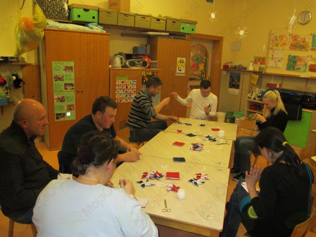 Zadnji teden v novembru smo v vseh skupinah pripravili ustvarjalne delavnice za starše. Izdelovali smo različne dekorativne in uporabne predmete, novoletne voščilnice, darilne vrečke … Starši so se delavnic z veseljem udeležili, na njih so marljivo ustvarjali in ob delu sproščeno poklepetali. Izdelke smo za prostovoljne prispevke »prodajali« na novoletni tržnici, ki jo je v četrtek, 4. decembra, pred osnovno šolo organiziral Šolski sklad. Vsa zbrana sredstva so namenjena otrokom iz socialno ogroženih družin.