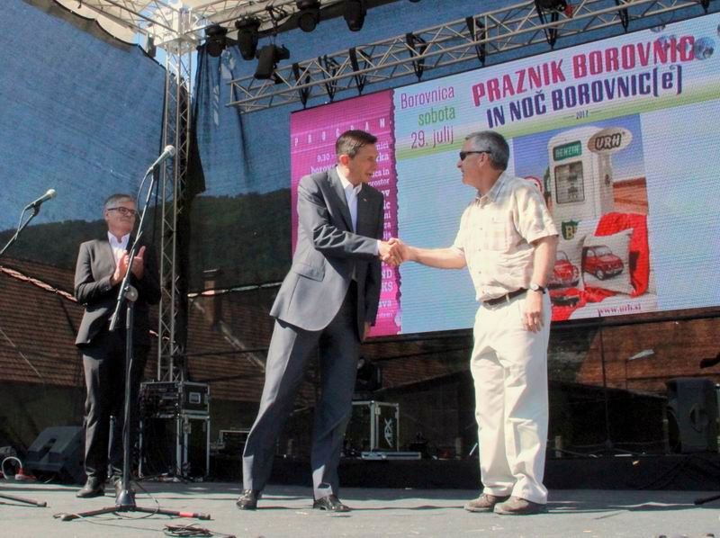 Ob 9.30 je iz Dola pri Borovnici krenila Borovničeva povorka. Še preden je prišla do osrednjega prizorišča in sejmišča na območju nekdanje industrijske cone LIKO, sta se tam eden za drugim znašla njegova ekscelenca, veleposlanik ZDA v Sloveniji g. Brent R. Hartley in predsednik Republike g. Borut Pahor. Sprejel in na odru ju je povabil župan Bojan Čebela. Oba visoka gosta sta nagovorila obiskovalce, se zahvalila za vabilo in obljubila, da to ni njun zadnji obisk v našem koncu. Predsednik Pahor je ob tem poudaril, da živimo ne le v lepi, temveč tudi v vse bolj urejeni domovini, veleposlanik Hartley pa vezi med obema državama, ki so jih spletli Slovenski izseljenci, skupna borba proti naci-fašizmu ter v tem koncu tudi uspešen prenos gojenja borovnic iz njegovega rodnega Oregona na nasade na Ljubljanskem barju.Oba sta tudi obiskala številne stojnice ter se zadržala v krajših razgovorih s pridelovalci borovnic, ekološko pridelanega sadja in zelenjave, medu, prodajalci suhe robe, naravne kozmetike, umetniške in domače robe itd. Na stojnici projekta projekta DEPO sta se seznanil, kako odsluženi in zavrženi predmeti vsakdanje rabe preko socialnega podjetništva dobijo svoje novo, včasih zelo drugačno življenje ter si s pomočjo na ta način narejenega smuti kolesa naredila vsak svoj okusen borovničev smuti.