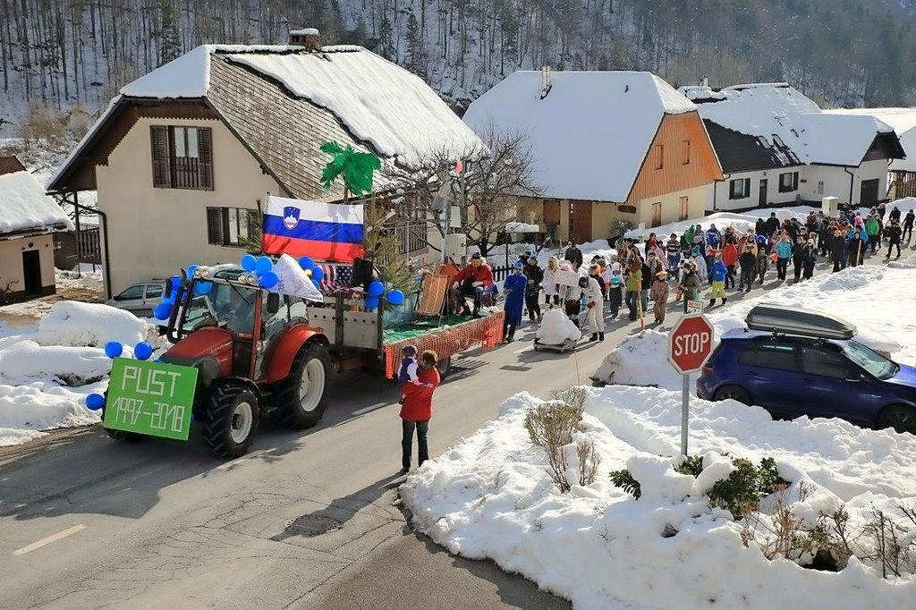 Pustna povorka krene izpred Motela Encijan do Hotela Alpine v Logu pod Mangrtom.
