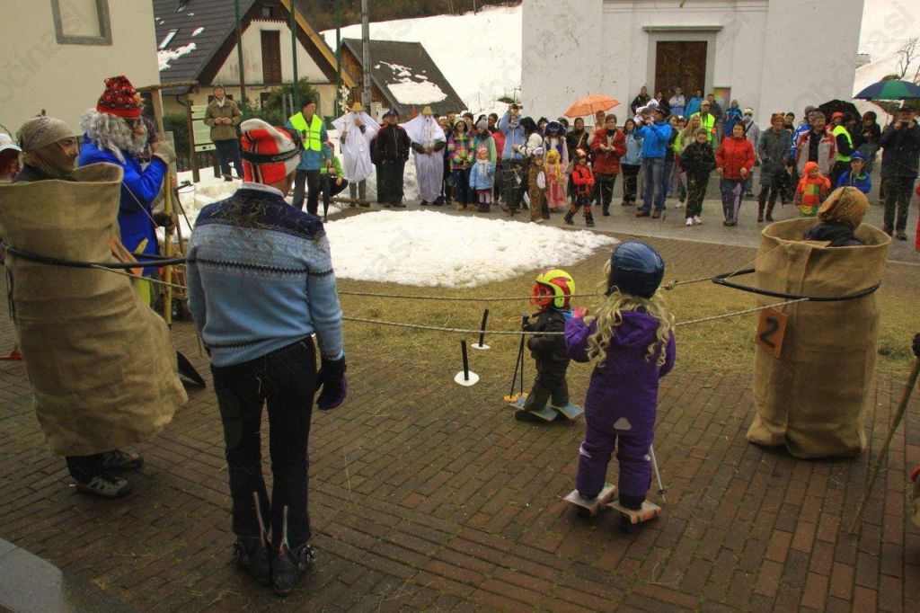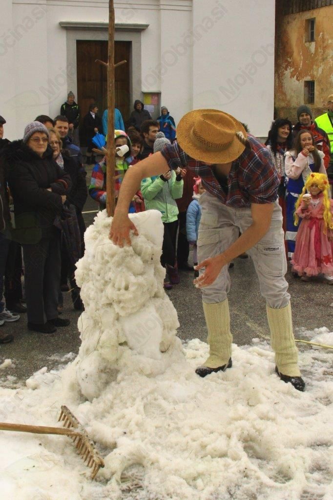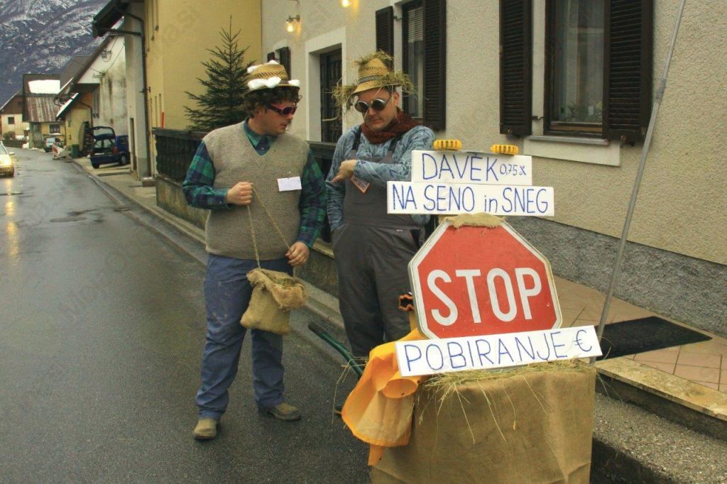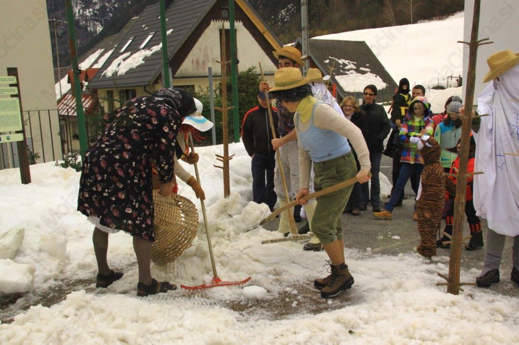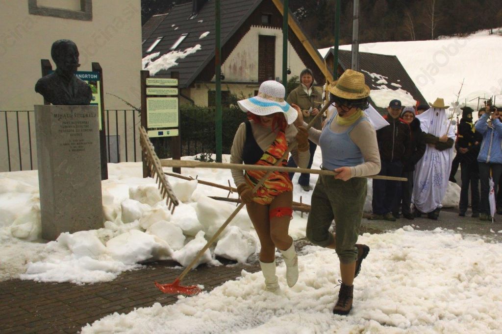 Zato so na pustno soboto v Logu pod Mangrtom s pomočjo senenega topa izdelovali smučarsko progo, senožake, smučarsko vlečnico na senu, v zameno pa kosili, grabili in v ustrgače zlagali sneg. Res narobe svet!