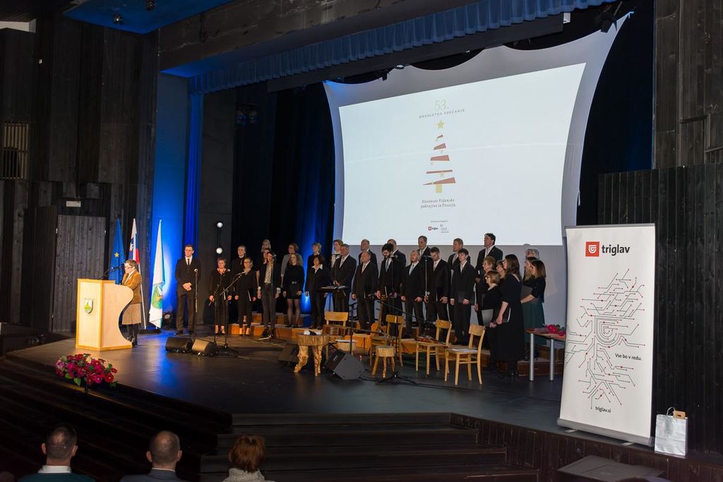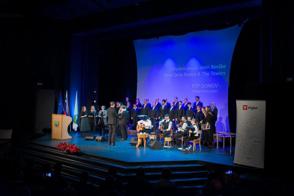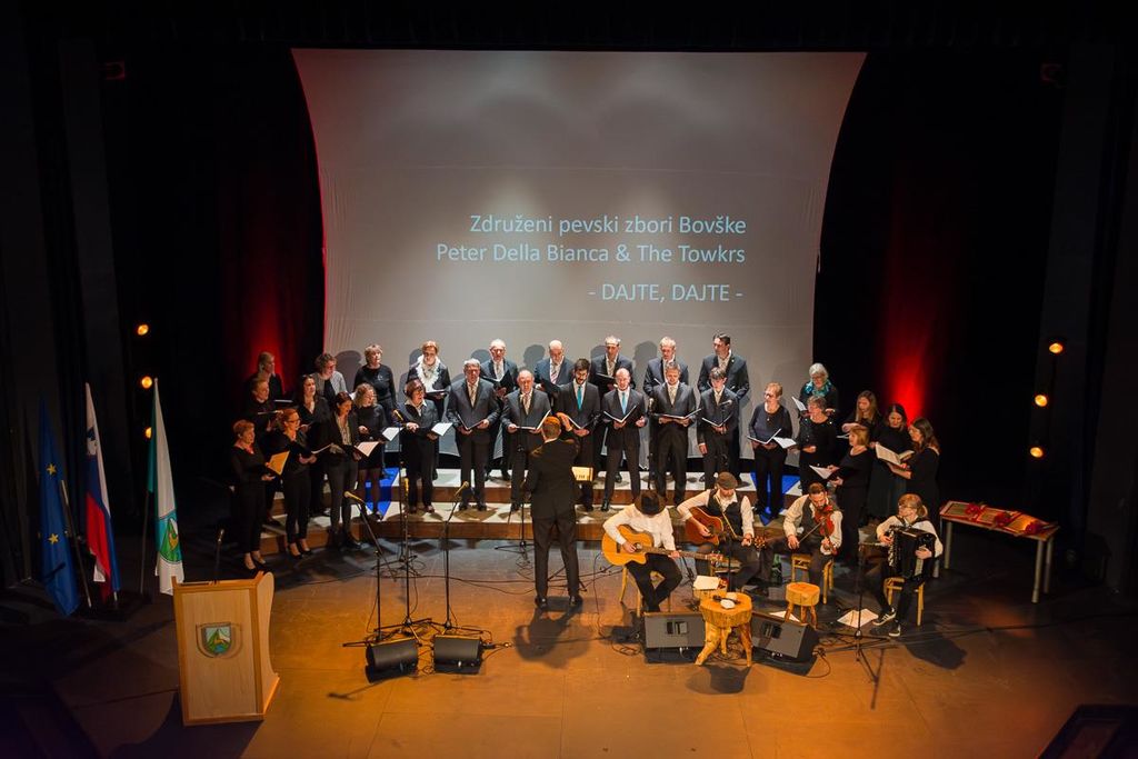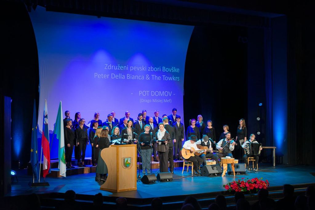 Osrednja prireditev 53. novoletnega srečanja Slovencev Videmske pokrajine in Posočja je bilo letos v veliki dvorani Ite Rine Kulturnega doma Bovec. Že tradicionalno srečanja pripravljajo Občine Bovec, Kobarid in Tolmin ter UE Tolmin, vsako leto poteka v eni izmed omenjenih Občin. Letos je bila v rokah Občine Bovec. Prireditev se je že začela na veličasten način, saj je je na oder stopil Združeni bovški pevski zbor, ki so ga sestavljali pevski zbori S planin, MePZ Golobar, MPZ Trenta in Buške čeče, kar se je zgodilo prvič, pod taktirko zborovodje Martina Kavčiča pa so v uvodu so zapeli slovensko himno. Verjetno v dvorani ni bilo nikogar, ki mu veličastno izvajanje ne bi priklicalo mravljincev po telesu. Skupaj s Petrom Della Bianca in The Towkrs so bili rdeča nit kulturnega programa skozi celotno prireditev. Prireditev sta povezovala Tjaša Platovšek in Jernej Cuder. Slednji je skupaj z njegovo zamislijo o Združenem bovškem zboru pripravil tudi scenarij prireditve. Na oder sta najprej povabila župana Občine Bovec Valterja Mlekuža, ki polno dvorano Ite Rine pozdravil v imenu vseh organizatorjev, v svojem in imenu županov Občin Kobarid in Tolmin Marka Matajurca in Alena Červa ter načelnika UE Tolmin Simona Lebana.