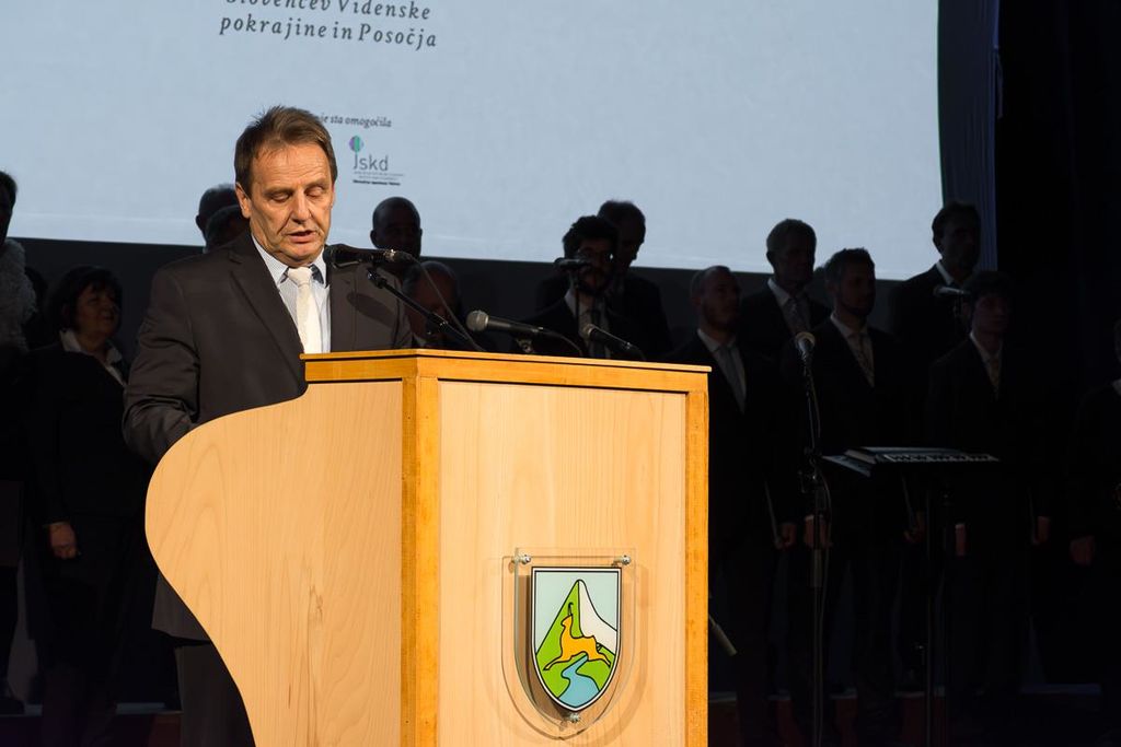 »Zelo sem vesel, da letos ponovno v našem Kulturnem domu. To je veliko bolj pomembna manifestacija, kot bi lahko ocenil bežni opazovalec, saj pomeni ohranjanje in nadgrajevanje vezi med Slovenci v matični domovini in Videmski pokrajini, zagotovo pa tudi jasno sporočilo političnim voditeljem v državi Sloveniji in tudi v Italiji. Status Slovencev in krovnih organizacij v Videmski pokrajini ni samoumeven, saj se je vedno znova treba boriti za zagotavljanje njihovih pravic kot manjšine. Zato je še kako pomembno, da to razumejo predvsem naši državni voditelji in Slovencem v zamejstvu nudijo maksimalno podporo. Zato so tudi ta srečanja priložnost za boljše poznavanje razmer, ohranjanje dosedanjih navez na vseh ravneh in sklepanje novih poznanstev. Pred tem srečanjem smo za okroglo mizo obravnavali nekatere izzive za prihodnost, pri čemer je najpomembnejši zaključek, da smo določili razvojni institucijo Posočja, to bo Posoški razvojni center, in Videmske pokrajine, to bo Gorska skupnost Ter, Nadiža in Brda, ki bosta v najkrajšem času izluščili konkretne čezmejne projekte, s katerimi bomo lahko resnično uspeli tudi pri pridobivanju evropskih sredstev. Ko govorimo o čezmejnem sodelovanju, bi se težko izognil opazki, da smo zaradi neodzivnosti naše države zapravili konkretno čezmejno sodelovanje smučišč Kanin in Sella Nevea. Če naša država tako pomembnega sodelovanja ne prepozna kot državno prioriteto, medtem ko Dežela Furlanija Julijska Krajina za smučišče na italijanski strani namenja več milijonov razvojnih sredstev, potem se bo težko pogovarjati o nekem resnem sodelovanju pri drugih projektih. Tudi težnja po ustanovitvi EZTS bo izvedljiva samo na konkretnih projektih, ki pa ne morejo biti samo razvojni, temveč namenjeni tudi boljšemu življenju prebivalstva na tem, lahko rečem skupnemu območju. Pri tem imam v mislih tudi naše najstarejše občane in skrb za dolgotrajno oskrbo. Srčno upam, da bomo v Bovcu končno le začeli graditi Dom starejših občanov. Skrb za ostarele ni samo naš problem. To je problem celotnega čezmejnega prostora. Morda je v obmejnih Občinah Videmske pokrajine celo bolj pereč, kot pri nas v Posočju, saj se prebivalstvo stara. Veste, če bomo znali poskrbeti, da bodo ostarele osebe, ki so največ naredile za naše današnje blagostanje, svojo starost preživljale dostojno in blizu svojih domov, bomo naredili tudi veliko za mlade. Tudi to namreč pomeni nova delovna mesta za mlade in obstoj mladih družin na našem območju. To želim danes posebej izpostaviti, ker je danes z nami minister za solidarno prihodnost Simon Maljevac in bo slišano zagotovo znal koristno uporabiti tudi v smislu čezmejnega sodelovanja. Imamo edinstveno priložnost, da naše čezmejno območje zares uveljavimo kot neko novo Evropsko združenje teritorialnega sodelovanja, v katerem bomo imeli Slovenci Videmske pokrajine in Posočja vodilno vlogo. Nikar je ne zapravimo. Slovenski Čedermac Beneške Slovenije msgr. Paskval Gujon nam mora biti vsem za zgled in svetla luč za prihodnost. Tako kot nam morajo biti za zgled letošnji prejemniki Gujonovih priznanj, ki jim iskreno čestitam in se jim zahvaljujem za ves njihov trud in prizadevanja. Naj živi sodelovanje Slovencev Videmske pokrajine in Posočja,« so bile besede župana Valterja Mlekuža, ki so izzvale buče aplavz.