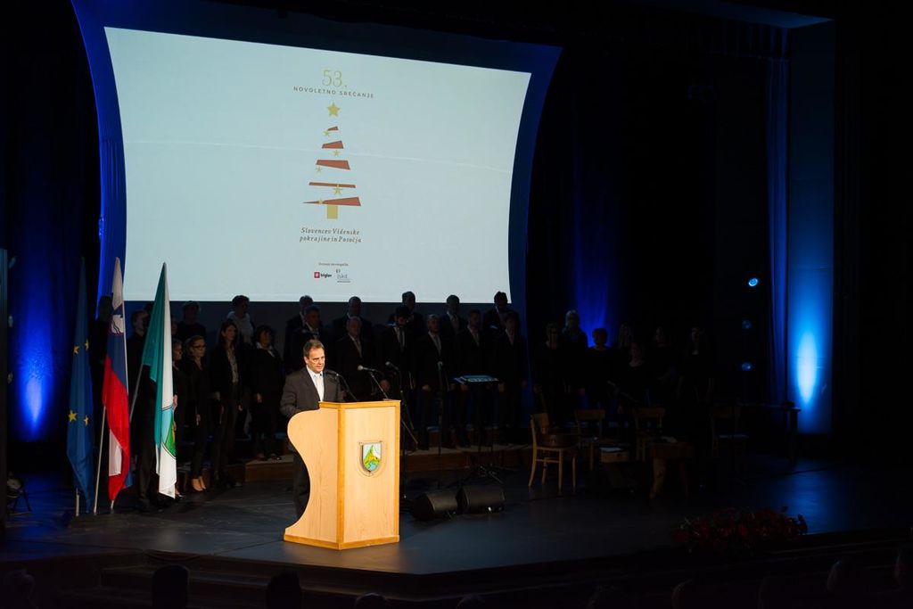Nekaj naslednjih minut je občinstvo uživalo v edinstvenem izvajanju slovenskih pesmi, nato pa so pozorno prisluhnili ministru za solidarno prihodnost Simonu Maljevcu. Izrazil je veliko veselje in ponos, da se je lahko udeležil srečanja: