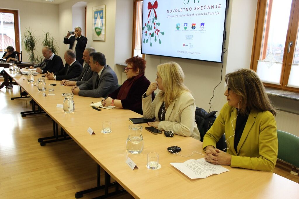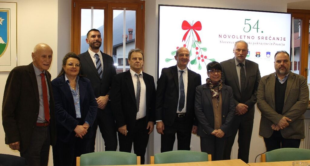 V soboto, 17. januarja 2026, je, tokrat v Kobaridu, potekalo že 54. tradicionalno novoletno srečanje Slovencev Videmske pokrajine in Posočja, ki ga vsako leto v drugi Občini pripravijo posoške Občine Bovec, Kobarid in Tolmin ter Upravna enota Tolmin. Že po tradiciji se je dogajanje začelo z delovnim srečanjem, in sicer v Domu Andreja Manfrede, letos pa še posebno pomembno, saj so predstavniki Občin na obeh straneh meje in gorskih skupnosti podpisali Pismo o nameri za ustanovitev Evropskega združenja za teritorialno sodelovanje (EZTS) z delovnim naslovom Skupne Doline – Valli Condivise. Delovnega srečanja so se udeležili podpredsednik Vlade Republike Slovenije in minister za Slovence v zamejstvu in po svetu Matej Arčon, podpredsednik DZ RS Danijel Krivec, Generalni konzul v Republiki Italiji Gregor Šuc, senatorki v italijanskem parlamentu Tatjana Rojc in Francesca Tubetti, vodja Kabineta predsednika Dežele FJK Sandra Sodini, ki je opravičila odsotnost predsednika Massimiliana Fedrige z njegovim dopisom in spodbudo ter popolno podporo Dežele FJK in njegove podpore k ustanovitvi EZTS, deželni svetnik FJK Marko Pisani, podpisniki Pisma o nameri župani Občin Bovec, Kobarid, Tolmin in Brda (župan Občine Kanal ob Soči se je opravičil) s slovenske strani Valter Mlekuž, Marko Matajurc, Alen Červ in Franc Mužič, z italijanske strani pa županji Občin Čedad in Prapotno Daniela Bernardi in Mariaclara Forti, predsednik Gorske skupnosti Nadiških in Terskih dolin Antonio Comugnaro in predsednik Gorske skupnosti Železne in Kanalske doline Ivan Buzzi, številni župani, podžupani in predstavniki drugih Občin, Walter Bandelj (Svet Slovenskih Organizacij), Nives Cossutta in Ivan Ciccone (Kulturno Gospodarska Zveza), Anna Wedam (Svet Slovenskih Organizacij), direktor PRC Simon Škvor in Renata Purpura (Civiform) ter drugi predstavniki posoških in zamejskih občin, slovenskih organizacij v Italiji ter političnega in diplomatskega prostora.