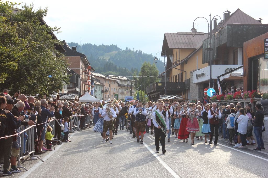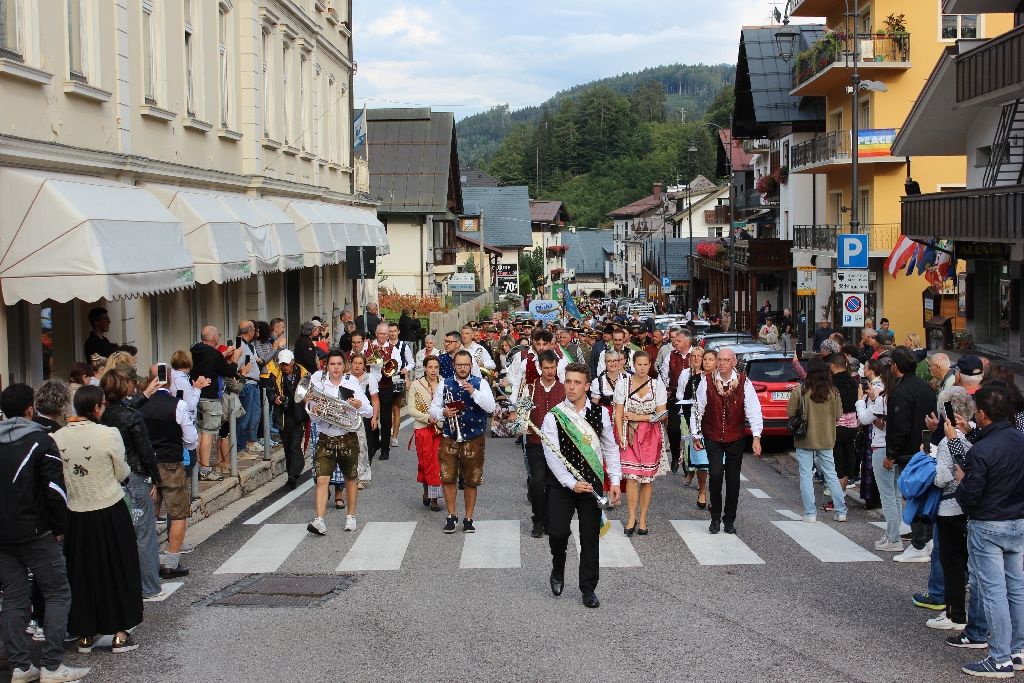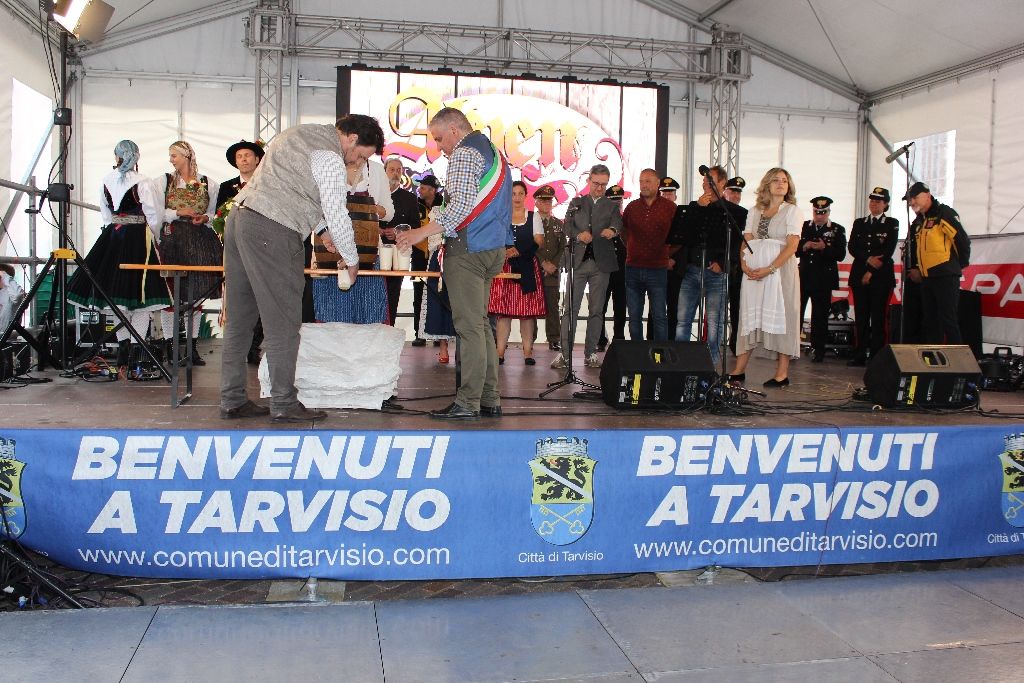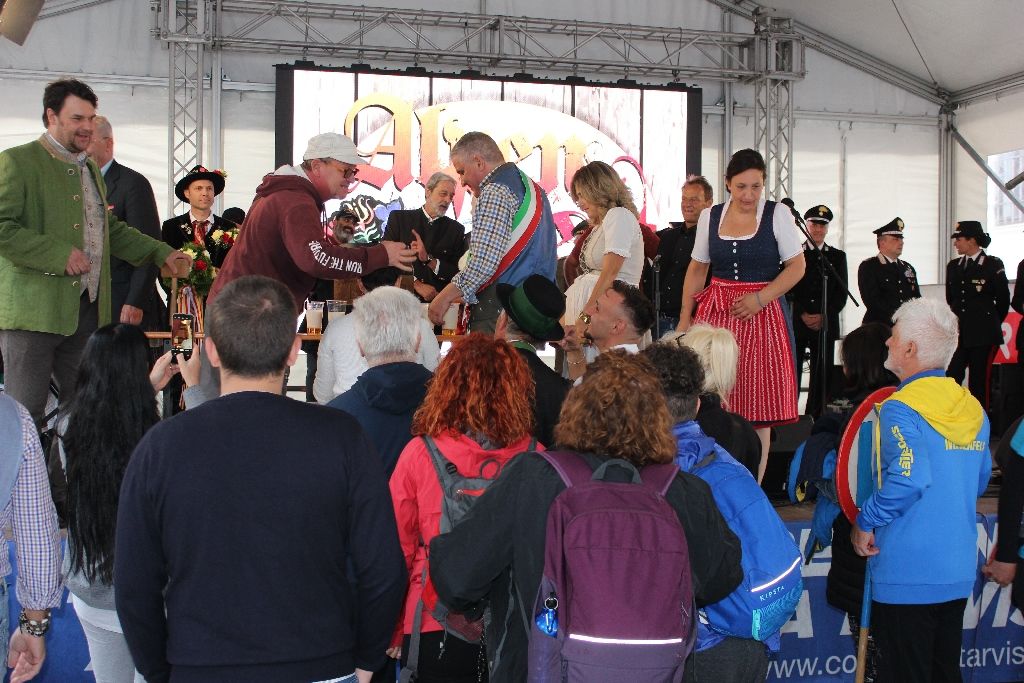 Najprej je vse pozdravila vodja letošnjega organizacijskega odbora Alessandra Visconti, župan Občine Trbiž Renzo Zanette pa je v nagovoru izrazil veselje, da se lahko po dolgem času zopet družimo in se zahvalil vsem prostovoljcem za njihov nesebični prispevek pri organizaciji dogodka ter vsem skupinam, ki so tvorili sprevod po Trbižu. Pozdravil je vse prisotne in še posebej župane sosednjih Občin, bovški župan Valter Mlekuž pa je bil tudi edini predstavnik slovenskih Občin. Zanette je izpostavil potrebo po krepitvi prijateljskih odnosov med obmejnimi občinami.