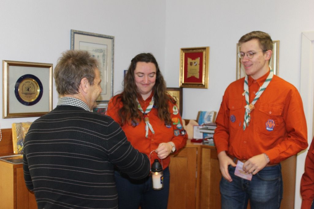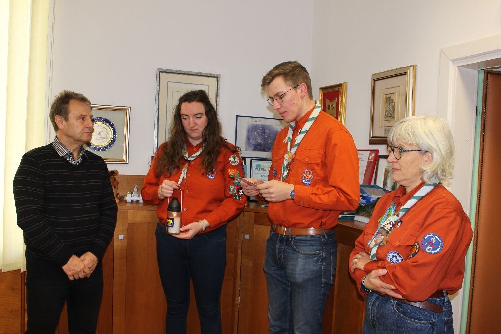 Župan Valter Mlekuž je z veseljem sprejel Betlehemsko luč in se skavtom iskreno zahvalil za njihov trud, njihovo celoletno delo in seveda zato, da se vsako leto spomnijo tudi nanj in Občino Bovec: