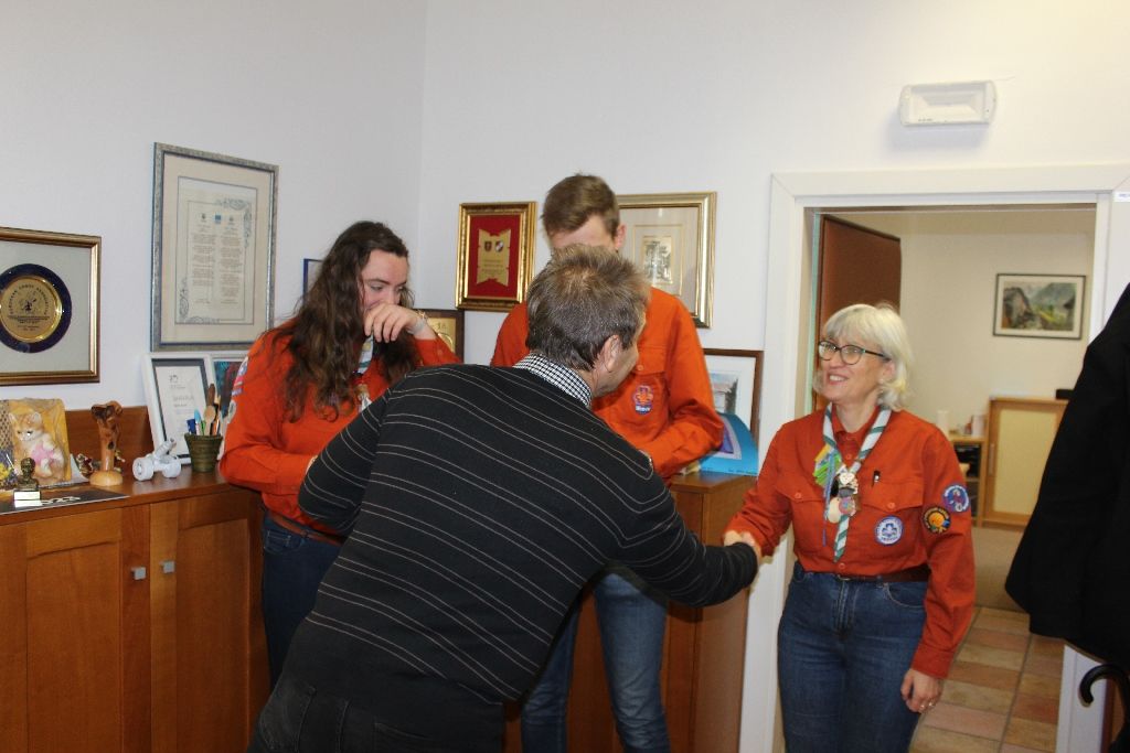 Bovški skavti praznujejo tudi okrogli obletnici, saj Steg Bovec 1 praznuje 20 let, bratovščina odraslih katoliških skavtinj in skavtov Bovec pa 10 let delovanja. V prijetnem klepetu so županu predstavili tudi nekaj akcij, ki so jih izvedli in nekaj dogodkov, ki so se jih udeležil, tudi na mednarodnem področju, omenili pa so tudi romanja.
