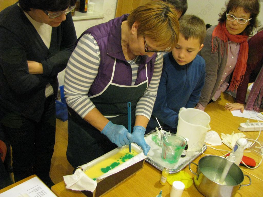 Petkovo mračno popoldne je bilo ravno pravšnje za ustvarjanje. V Buncovi hiši smo se zbrali odrasli in otroci, kjer smo sledili zahtevnemu postopku izdelave mil iz naravnih materialov. Sestavine je potrebno zelo natančno odmeriti ter jih zelo previdno zamešati. Spoznali smo, da nabava materialov ni tako enostavna in kdor se želi ukvarjati s prodajo tovrstnih oz. naravnih mil mora slediti zelo zahtevnim pravilom. Vsi udeleženci smo prejeli svoj košček mila, milo ki smo ga izdelovali na delavnici pa je šel v postopek sušenja in zorenja.