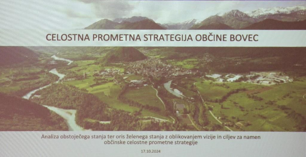 Občina Bovec je začela aktivno pripravo druge Celostne prometne strategije Občine Bovec. Prva Celostna prometna strategija Občine Bovec je bila izdelana in sprejeta avgusta 2018, ker pa so se razmere močno spremenile, je nastopil čas za novo Občinsko celostno prometno strategijo (OCPS) Občine Bovec, v kateri bodo začrtani cilji za obdobje naslednjih sedmih let. S pomočjo OCPS bodo naslovljeni glavni izzivi na področju prometa, katerega cilji pa so tudi zmanjšanje motornega prometa in emisij, zagotavljanje čistejšega okolja, in na ta način tudi zmanjšanje porabe omejenih virov energije. Oblikovanje strategije sofinancira Ministrstvo za okolje, podnebje in energijo s sredstvi evropske kohezijske politike. V ta namen je v četrtek, 17. 10. 2024, v veliki dvorani Stergulčeve hiše potekala prva delavnica z javno razpravo o analizi obstoječega stanja v prometu, na katero so bili povabljeni tudi občanke in občani Občine Bovec. Čeprav širše javnosti ni bilo, so predstavniki KS, društev in drugih institucij kot širša delovna skupina zelo delovno pristopili k podajanju predlogov za dosego prej omenjenih ciljev.