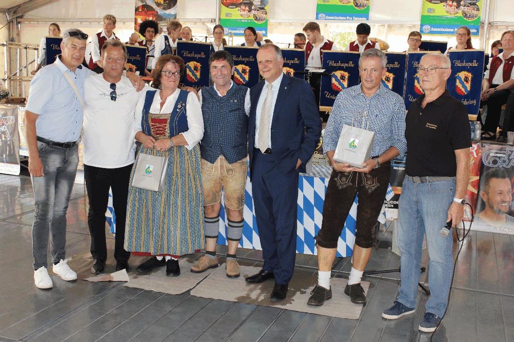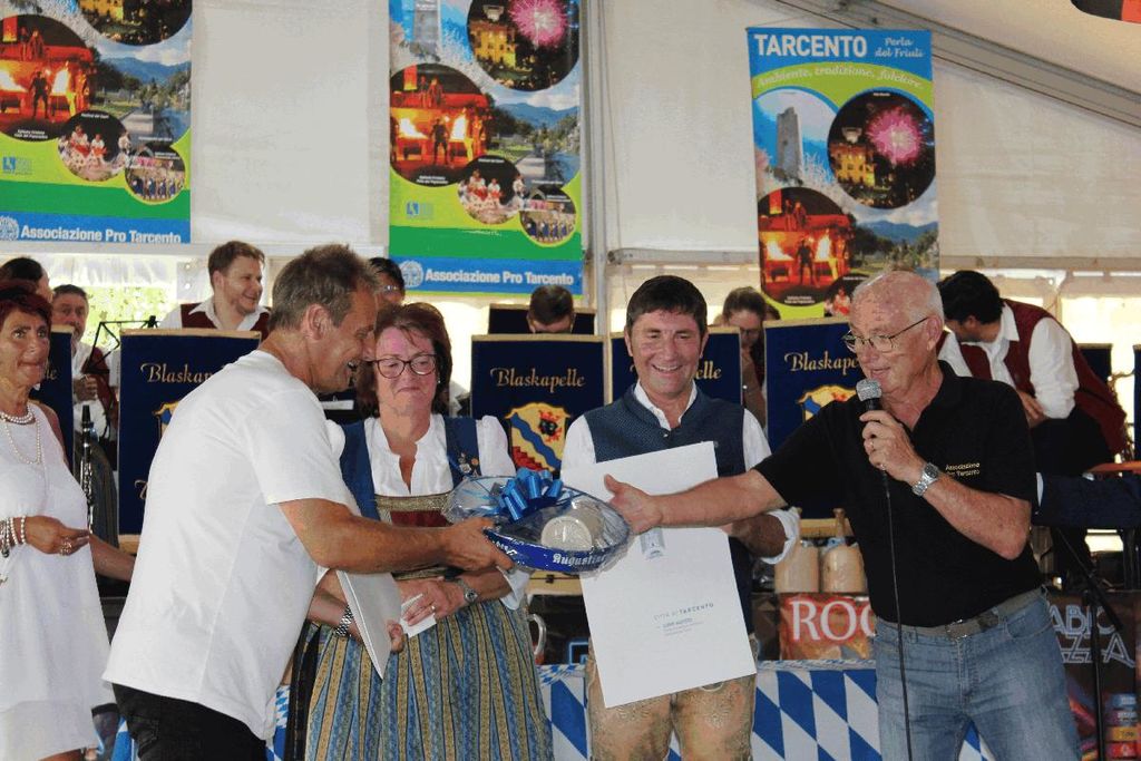 Župan Občine Čenta Mauro Steccati se je pridružil tik zatem, Reinhard Antolitsch, župan občine Podklošter (Arnoldsteine), pa se je letos zaradi drugih neodložljivih obveznosti opravičil. Po zdravicah ob glasbi Blaskapelle Unterföhring so sledili pozdravi treh prisotnih županov pobratenih Občin.