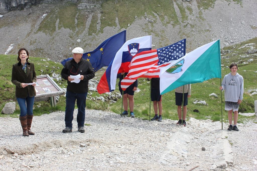 Spominski venec so ob spominski tabli položili n.e. Jamie L. Harpootlian, župan Občine Bovec Valter Mlekuž in v imenu ZVGS brigadir v pokoju Janez Kavar.