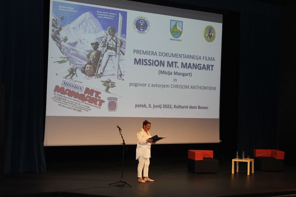 »Gospa veleposlanica, zelo smo ponosni, da ste sklenili današnji dan preživeti z nami. Tako na Mangartskem sedlu, kjer smo obujali spomine na tekmo pred 77 leti, kot zdaj ob ogledu filma. Ponosni smo, da se to dogaja v majhni slovenski Občini Bovec, v Sloveniji, ki je postala vaš drugi dom. Občina Bovec v tej zgodbi že dolgo let sodeluje z ZVGS in gospodom Kavarjem, z ameriško ambasado in zadnje čase tudi z gospodom Anthonyjem. Danes nam je s to premiero uspelo doseči želeni cilj. V današnjih razburkanih časih, ko traja ta nesmiselna vojna v Ukrajini, želimo dokazati, da nas lahko povezuje samo prijateljstvo. Kot sem že večkrat poudaril, dandanes ni bogat tisti, ki ima veliko denarja, temveč tisti, ki ima prave prijatelje. Jaz sem ponosen, da jih mi Bovčani in Slovenci imamo. To ste tudi vi, cenjeni gosti, ki prihajate iz ZDA. Verjamem, da bomo take prijateljske odnose gojili tudi naprej in bomo pokazali, da je bilo dovolj krvi, gorja in solza, in bomo dosegli, da zaživimo v miru in sreči.«