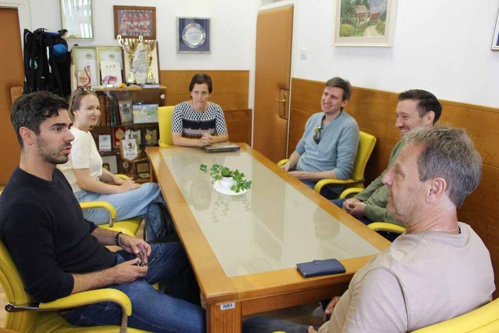 Po lanskoletnem izjemnem uspehu in zadovoljstvu ob izvedbi prve Mednarodne poletne šole kitare v Bovcu letos doživlja svojo drugo izvedbo. Od ponedeljka 4. 8. naprej se Mednarodne poletne šole kitare v Bovcu udeležuje 9 študentov in 5 učencev iz lokalnega okolja, prihajajo pa iz ZDA, Avstrije, Japonske, Kazahstana, Poljske in seveda Slovenije. Občina Bovec pa tudi letos sofinancira izvedbo in v ta namen letos namenja 7.000,00€, na ta način pa je skupaj z društvom EGTA tudi soorganizator. Že od ponedeljka naprej udeleženci vsak večer ob 20. uri izvedejo koncert v cerkvici Device Marije. Danes je profesorje v svoji pisarni sprejel župan Občine Bovec Valter Mlekuž in skupaj s sodelavko Katjo Mrakič z veseljem poslušal izražanje zadovoljstva nad odličnimi pogoji tako za izvajanje učnega programa kot tudi možnosti koncertiranja. Župana so obiskali profesorji dr. Mak Grgić, mag. Jure Cerkovnik, dr. Nejc Kuhar in mag. Doris Ćosić, ki letos prvič vodi program za najmlajše udeležence z Bovškega. Program vključuje individualne ure, profesionalne delavnice in koncerte. Župan Občine Bovec Valter Mlekuž se je vsem zahvalil za njihovo profesionalno delo in organizacijo Mednarodne poletne šole kitare prav v Bovcu, hkrati pa izrazil tudi željo, da se ta projekt sčasoma razvija in postane še bolj prepoznaven v širšem prostoru.