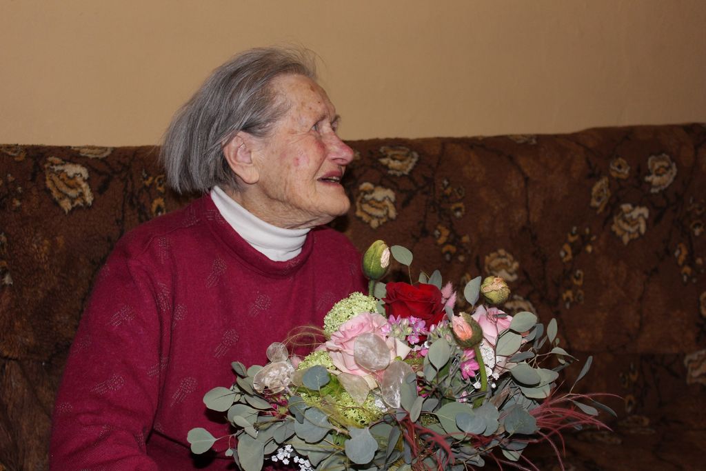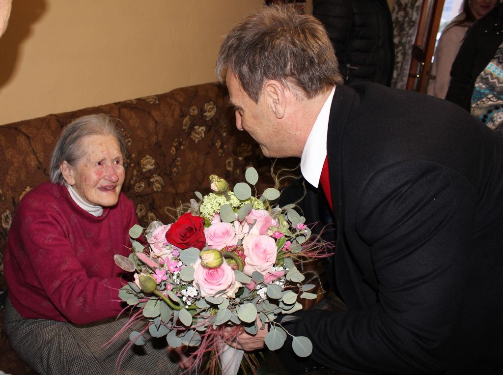 Gospa Ida je bila obiskov zelo vesela, in če bi kdo menil, da bi ji lahko šlo glasno praznovanje s petjem na živce, bi se zelo motil. Najprej ji je čestital župan Občine Bovec Valter Mlekuž, in gospe Idi Rot zaželel še veliko zdravih let. Izročil ji je šopek rož, ki se jih je slavljenka zelo razveselila, prav prisrčno pa je bilo tudi skupno fotografiranje.