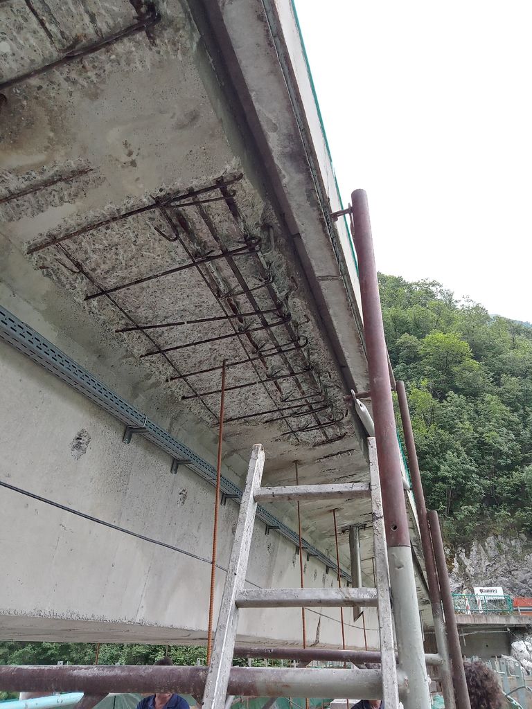Od uvedbe popolne zapore mostu za ves promet je izvajalec izvedel odbijanje slabega betona na mostni konstrukciji, peskanje betona in armature, protikorozijsko zaščito, pranje površine mostnega nosilca in izvedbo potrebnih del za injektiranje razpok.