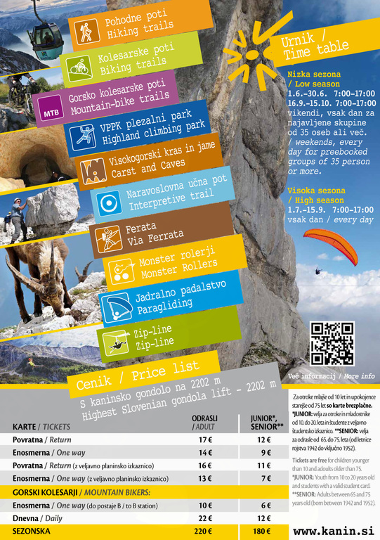 Zimska sezona na Kaninu bo predvidoma trajala še do konca prvomajskih počitnic (s krajšimi obratovalnimi premori), napovedujejo pa tudi že pestro ponudbo v poletni sezoni. Najvišja slovenska gondola bo v poletnem času obratovala od 3. junija dalje.