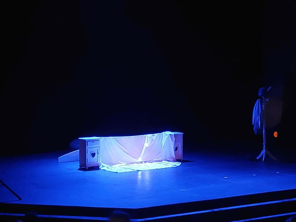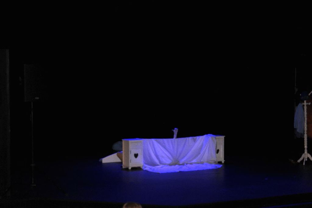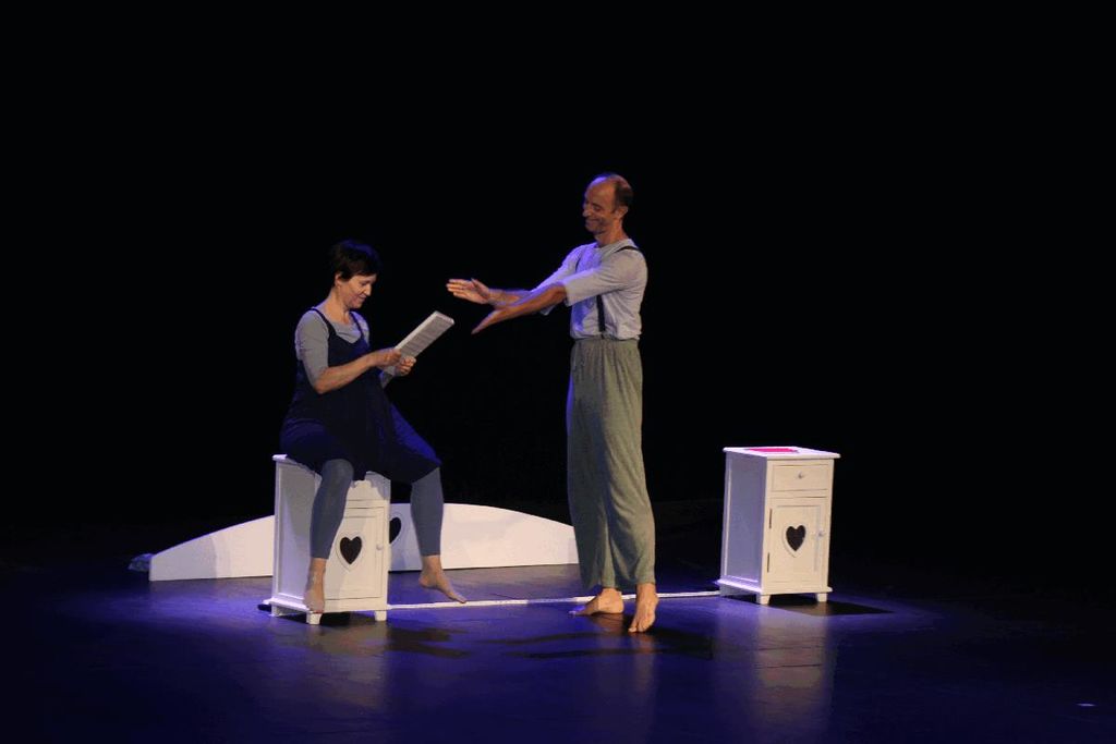 Predstava nosi naslov Potovanje v odkrivanje poetike rjuh, v igri pa se dva lika preprosto pripravljata na spanje. Banalna in vsakdanja operacija se spremeni v epski podvig. Dolga serija gegov komikov nemega filma spremlja pripravo postelje dveh protagonistov: konkretnega in praktičnega NJEGA ter okorne in kipeče NJE. Šala se nadaljuje tudi na lučeh: prižiga, ugasne, prižge, ugasne. Spimo - sanjamo. V sanjski simfoniji globokega spanca se v predstavi brez prekinitev premikamo od nočne pokrajine kresnic in sov do razburkanega morja, od pojavov skrivnostnih postav do razkošnih kosil. Teorija sanj razčlenjuje dnevne izkušnje in strahove, med manifestno vsebino in latentno vsebino se človek reši pred valovi brodoloma in nato umre od prevelike sitosti. A to so le sanje: sanjsko potovanje, da odkrijemo poetiko rjuh, dokler petelin ne zapoje in sonce ne vzide.