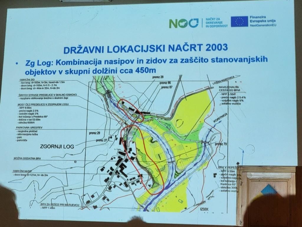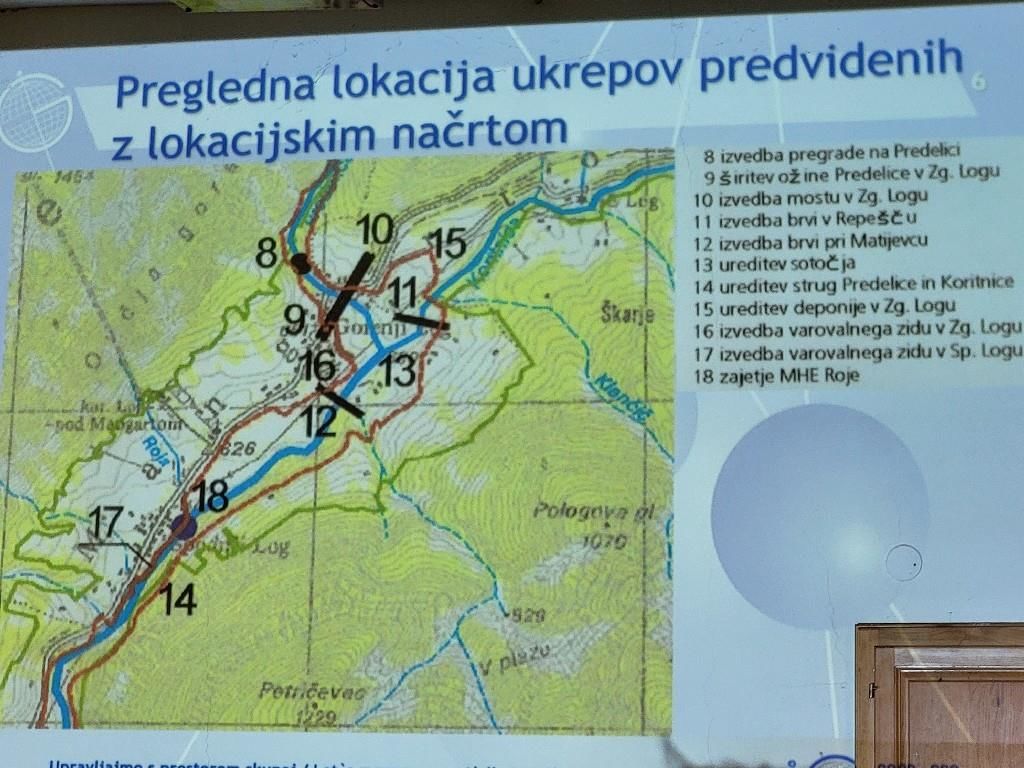 Vivoda je že v samem uvodu nakazal, da so najpomembnejši del projekta varovalni zidovi pred drobirskim tokom v Zgornjem in Spodnjem Logu, za gradnjo katerega pa bodo potrebovali dogovor z lastniki zemljišč. Predstavil je sodelavce, najprej pa vodko projekta mag. Tomaža Prodana z Ministrstva za naravne vire in prostor, nato pa še zunanje izvajalce, predstavnike IGEA d. o. o., strokovne sodelavce za pripravo projektne dokumentacije ter predstavnike projektantov.