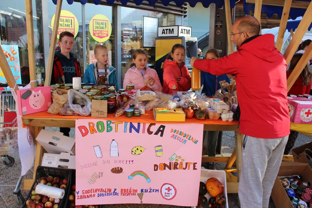 Rdeči križ Slovenije je v sodelovanju z Osnovno šolo Bovec, na pobudo ravnateljice Denise Šuler Rutar, letos prvič pripravil mednarodno akcijo Drobtinica tudi v Bovcu. Pred marketom Mercator je danes tako zelo pestro, predvsem pa dobrodelno.