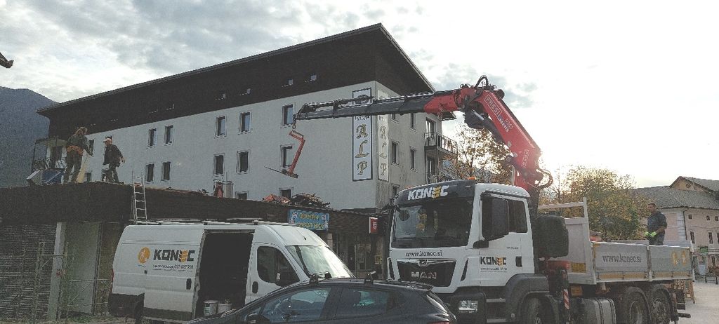 Dotrajana kritina je ob večjih nalivih ponekod že zamakala, zato je Občina Bovec, ki je s podpisom pogodbe decembra 2020 objekt kupila od NKBM d.d., zdaj pristopila k zamenjavi strešne kritine. Včeraj so bakreno kritino odstranili, v naslednjih dneh pa bo izvajalec položil novo.