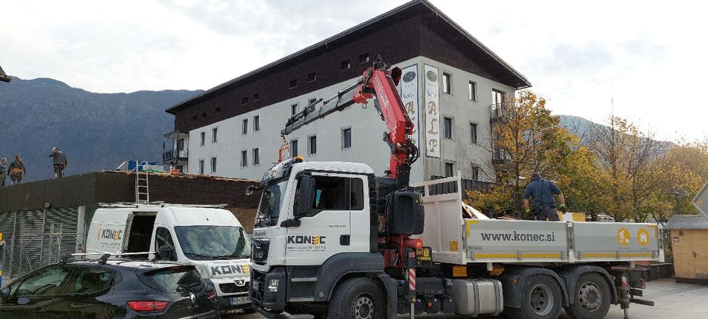 Na objektu bivše banke, kmalu novega Turistično informacijskega centra Bovec v centru Bovca, je izvajalec del, Konec d.o.o., pristopil k zamenjavi strešne kritine.