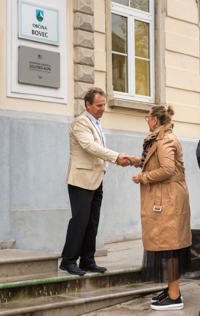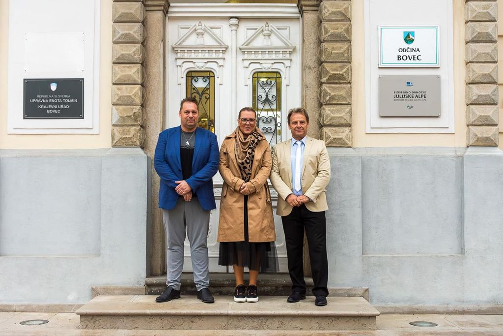 V petek, 18. 10., se je na Bovškem mudila ministrica za kmetijstvo, gozdarstvo in prehrano Mateja Čalušić, v dopoldanskem času pa je najprej obiskala župana Občine Bovec Valterja Mlekuža, ki je s podžupanom Erikom Cudrom, v. d. direktorja občinske uprave Cecilijo Avsenik in zadolženim za odnose z javnostmi in vodjem protokola celotnega dogajanja ob obisku Milanom Štulcem ministrico sprejel v svoji pisarni. Beseda je tekla o vse večjem porastu števila jelenjadi, šakalov in v zadnjem času celo volka in s tem v zvezi vse večjimi težavami kmetovalcev oziroma živinorejcev na Bovškem. Ministrici so predstavili specifičnost paše na planinah, kjer klasično postavljanje ograj za zaščito živali ne pride v poštev. Spregovorili so tudi o težavnosti postopkov za prekvalifikacijo kmetijskega v zazidano parcelo, pa tudi o tem, da zemljo kupujejo ljudje s statusom kmetov od drugod, nato pa s tako pridobljenim zemljiščem špekulirajo. Ministrica Mateja Čalušić je pozorno prisluhnila povedanemu in ponudila tudi nekaj rešitev, poudarila pa tudi, da bo veliko novosti prinesel nov zakon, ki je v pripravi in v katerega želijo vključiti tudi konkretne predloge s terena. Sicer pa je Občina Bovec pripravila tudi srečanje ministrice s kmetovalci, s katerimi se je po obisku na Občini srečala v mali dvorani KD Bovec.