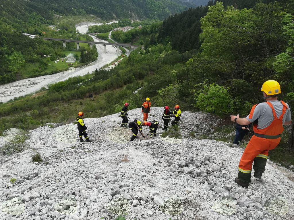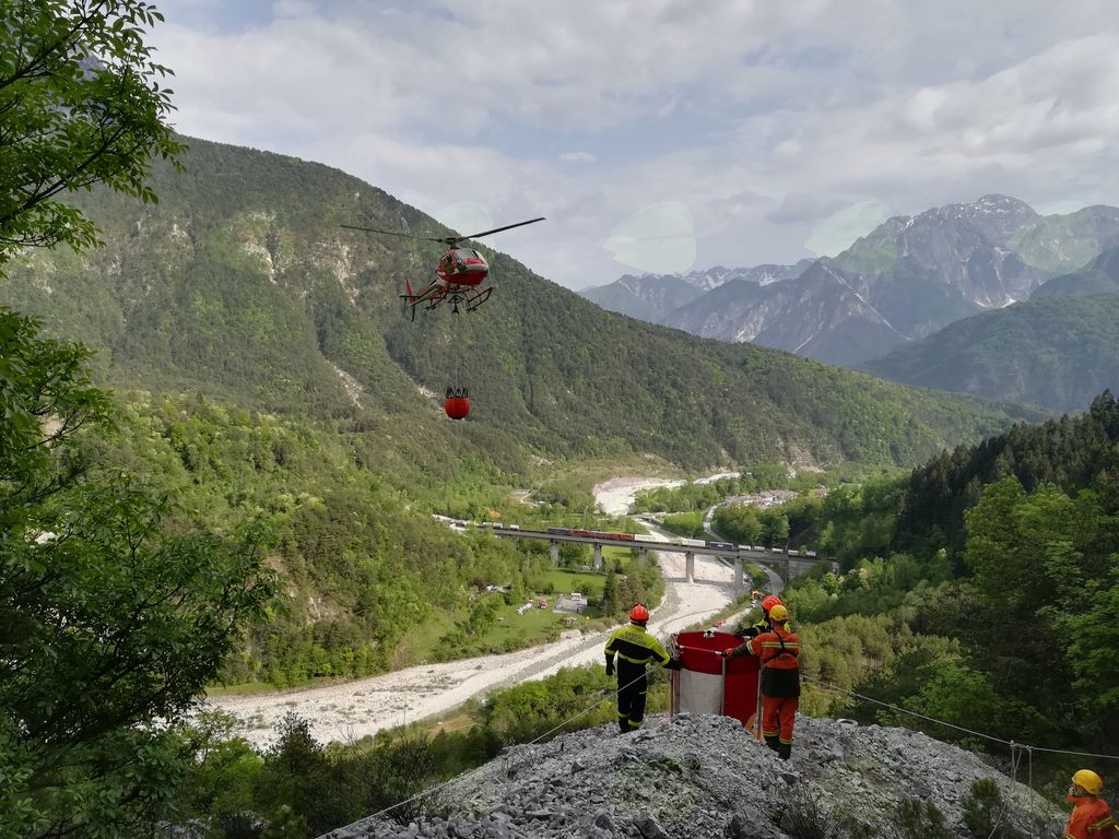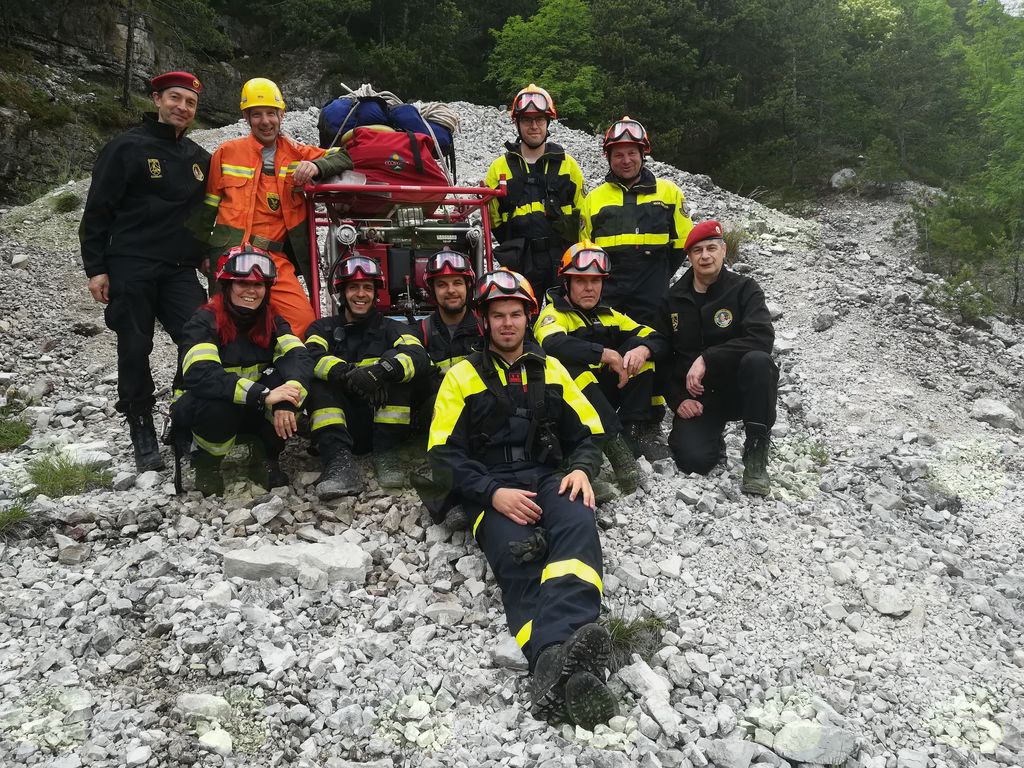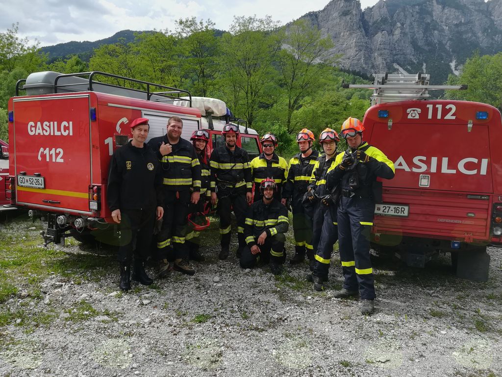 5.maja 2018 je v kraju Moggio v Italiji potekala velika mednarodna gasilska vaja “Gozdni požar 2018” v kateri so sodelovale gasilske enote iz Italije, Avstrije in Slovenije. Iz Slovenije so se vaje udeležili gasilci iz PGD Hrvatini, PGD Šempeter pri Gorici ter gasilci PGD Log pod Mangartom,PGD Bovec in PGD Srpenica ter del ekipe posebne gasilske enote za gašenje v visokogorju Gamsi. V vaji, ki je imela predpostavko, da je v kraju Moggio prišlo do velikega gozdnega požara, ki se je razplamtel na več področij, med drugim tudi v visokogorju je sodelovalo 162 gasilcev z 45 vozili in en helikopter. Posebno čast pri tej vaji so prav gotovo bili deležni člani posebne enote Gamsi, saj so jim tamkajšnji gasilci zaupali zelo zahtevno nalogo gašenja na zelo težko dostopnem terenu. Seveda so imeli Gamsi na voljo tudi vso njihovo tehniko in opremo s katero so posredovali. Na  goro z opremo skupaj so jih pripeljali z njihovim helikopterjem, kateri je sodeloval v vaji. Seveda so Gamsi svojo nalogo izvedli z odliko, za kar se jim je po koncu vaje pred postrojem vseh sodelujočih prav posebej zahvalil tudi vodja in organizator same vaje Mario Pugnetti – poveljnik tamkajšnjih gasilcev in koordinator civilne zaščite za to območje v Furlaniji Julijski Krajini. Po zaključku vaje je nato sledila analiza vaje v katero se je vključil tudi  sam poveljnik GEV Gamsi Miro Bozja, kateri se je italijanskim kolegom iskreno zahvalil za povabilo na vajo in sodelovanje ter njihovo zaupanje in podporo naši enoti Gamsi, za katero lahko rečemo, da še v Sloveniji nima take pozornosti. Skupno sodelovanje na terenu z helikopterjem in člani enote Corpo Forestale je bilo na najvišji možni ravni, saj je potekalo delo brezhibno,strokovno in nemoteno, predvsem pa se je izkazalo, kako pomembno je sodelovanje s posadko helikopterja, namreč ta je bila v vaji več kot “odlična”. Ob tej priliki se gasilcem iz Italije in njihovemu poveljniku Mariu iskreno zahvaljujemo, čestitamo ob praznovanju njihove 40. obletnico delovanja prostovoljnega gasilskega društva Moggio ter nadaljnjega sodelovanja med gasilci in pripadniki civilne zaščite Furlanije Julijske Krajine.