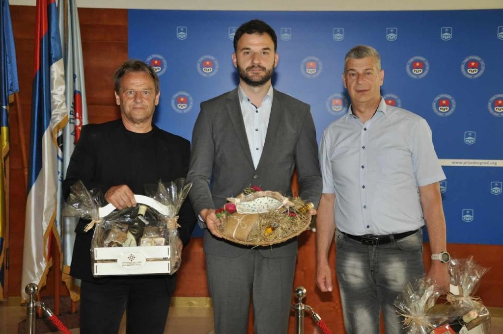 Tradicionalni županov sprejem naše delegacije je bil v mali sejni sobi urada župana Občine Prijedor Slobodana Javorja, kot po navadi pa sta si župana po prijetnem klepetu in snovanju novih priložnosti za sodelovanje med Občinama izmenjala priložnostna darila. Ob tem je župan Občine Prijedor Slobodan Javor izrazil veselje, da se delegacije Občine Bovec redno udeležujejo njihovega praznika in obljubil prisotnost tudi ob prazniku Občine Bovec v Bovcu. Ponovil je besede, ki jih je izrekel tudi v nagovoru na slavnostni Akademiji, da vsi skupaj živijo, delajo, dihajo kot eden in da je prav to sporočilo, da so en narod in da je njihovo mesto idealno za življenje, take rezultate pa lahko dosegajo le, če pristopimo skupaj iskreno, srčno ter z odprtimi rokami do vseh.