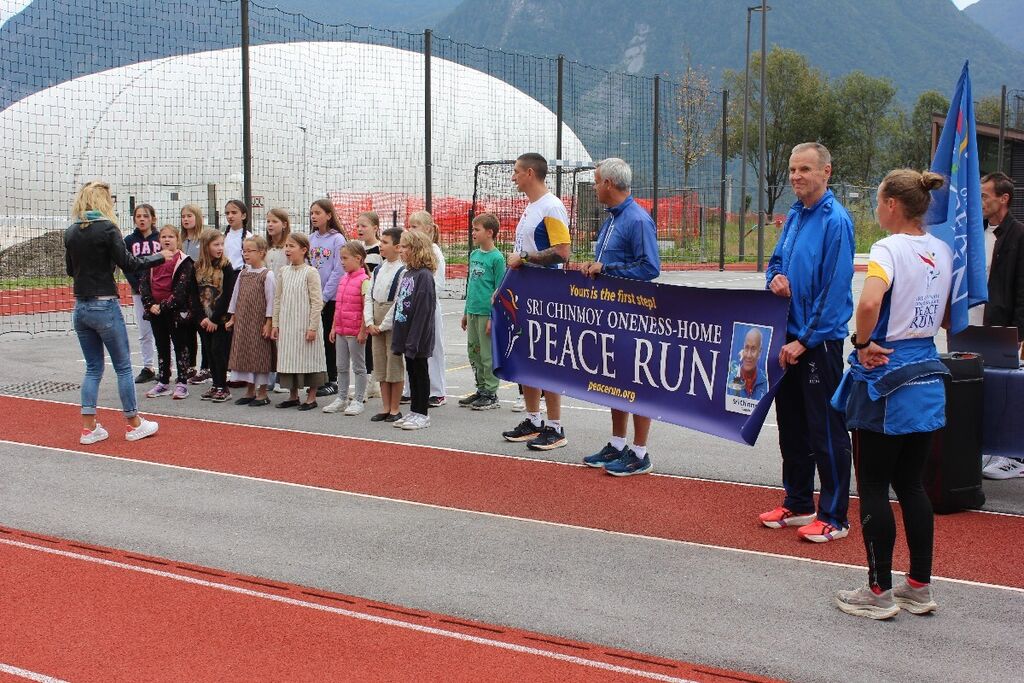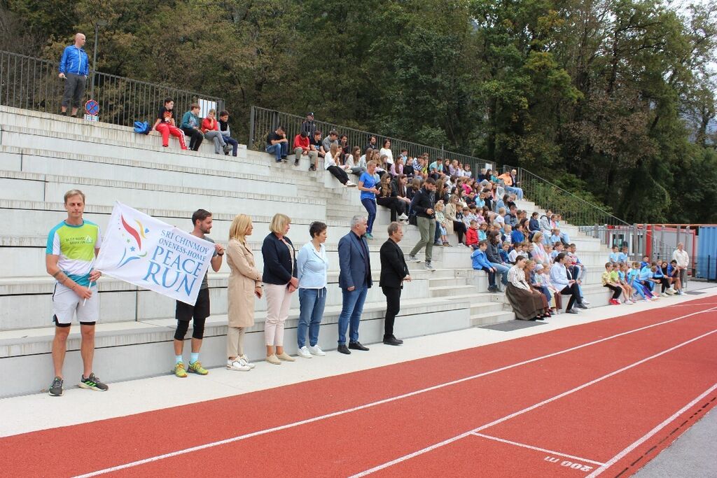 29. 9. 2025 so na športnem igrišču v Bovcu pričakali baklo Teka miru, ob učencih in nekaterih učiteljih pa so nosilce PLAMENICE MIRU pričakali še župan Občine Bovec Valter Mlekuž, direktor občinske uprave Sejad Jušić, Jožica Kavs in Katja Mrakič iz službe za družbene dejavnosti Občine Bovec in ravnateljica OŠ Bovec Denise Šuler Rutar. Sri Chinmoy Oneness‑Home Peace Run, znan kot Tek miru, je največji in najdaljši štafetni tek za mir na svetu. Ustanovil ga je leta 1987 duhovni učitelj Sri Chinmoy. Mednarodna ekipa tekačev nosi plamenico miru, ki simbolizira skupno hrepenenje po miru in prijateljstvu. Plamenica gre iz roke v roko, iz srca v srce, v državah po vsem svetu. Doslej jo je držalo že več milijonov ljudi, ki so izrazili svojo osebno željo po bolj harmoničnem svetu. Mednarodna ekipa tekačev je letos pritekla iz Italije ter nosi plamenico miru skozi Slovenijo v času med 28 in 30. septembrom, danes je prispela tudi do Bovca. Na poti tekači srečujejo politike, župane in druge javne osebnosti, a njihovi najljubši postanki so prav šole, kjer z otroki delijo navdih in sporočilo: vsak izmed nas ima pomembno vlogo pri gradnji prijaznejšega in mirnejšega sveta. Koordinatorka Teka miru za Slovenijo je Narmadyuti Jasmina Ridzi, danes pa je na Športnem igrišču Bovec vse nagovoril mednarodni koordinator Teka miru Devashishu Thorpy.