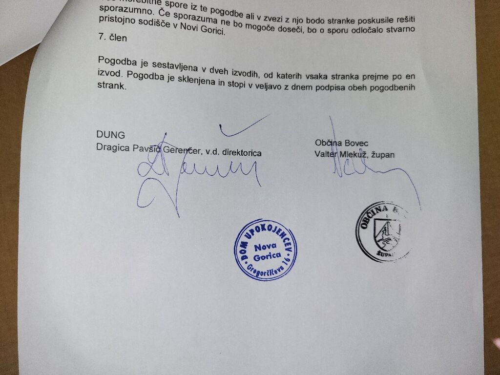 21. 7. 2025, je bil storjen pomemben korak k nadaljnjim postopkom izgradnje DSO Jezerca Bovec. Med Občino Bovec, ki jo zastopa župan Občine Bovec Valter Mlekuž, in Domom upokojencev Nova Gorica (DUNG), ki ga zastopa v. d. direktorja DUNG Dragica Pavšič Gerenčer, je bila namreč podpisana Pogodba o kritju stroškov pri izvedbi investicije-izgradnje DSO Jezerca Bovec. Pogodbo določa nadaljnje korake, dolžnosti in pristojnosti obeh podpisnikov pogodbe. Gre za novelacijo projekta gradnje DSO Jezerca Bovec, ki je zdaj ocenjen na skoraj 9,5 milijona evrov. Svet Zavoda DUNG je novelacijo projekta in tekst pogodbe potrdil soglasno, s tem pa so se odprla vrata za objavo razpisa za pridobitev izvajalca, nadzora in v tem primeru tudi supernadzora, ki ga bo v sodelovanju z Občino Bovec objavil DUNG. Včerajšnjega podpisa se je seveda zelo razveselil predvsem župan Občine Bovec Valter Mlekuž, ki zdaj pričakuje čimprejšnjo objavo razpisa za izbiro izvajalca in vseh nadzorov. Občina Bovec je za gradnjo že do leta 2020 pridobila vsa zemljišča, ki so bila v zasebni lasti, 16. 4. 2021 pa pridobila tudi gradbeno dovoljenje, s čimer so bili izpolnjeni vsi pogoji za pridobivanje nepovratnih državnih sredstev in začetek gradnje.