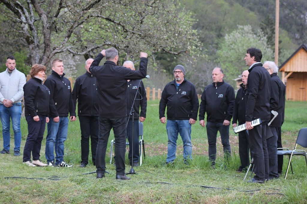 Ob domoljubnih pesmih MZP Golobar sta zadoneli tudi harmoniki, člana LD Čezsoča pa sta pred spomenik padlim golobarskim žrtvam položila spominski venec.