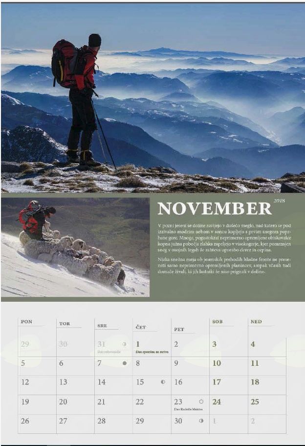 Cena koledarja je 6 EUR (z DDV). Z nakupom koledarja boste prispevali 1 EUR v Sklad Okrešelj, preostanek bo namenjen delovanju GRS Tolmin.