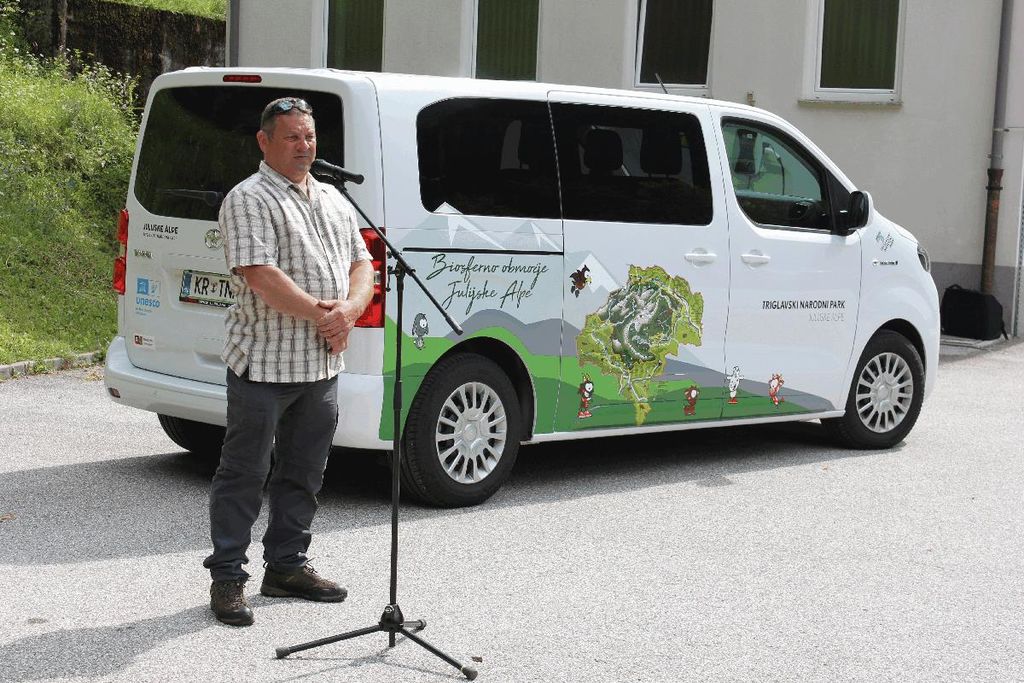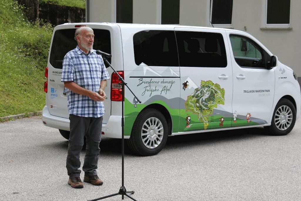 »Mogoče nas je prav TNP tako povezal. Med seboj smo prijatelji in nismo nikoli nevoščljivi eden drugemu za posamezne pridobitve. Mi letos s tem primerom orjemo ledino, verjamem pa, da bodo tudi druge občine v TNP kmalu dobile podobno vozilo. Še nedolgo nazaj smo TNP jemali kot neko nujno zlo, vendar je prav Zakon o TNP omogočil razvoj na tem območju in smo ga zato sprejeli kot del naše doline. TNP tako ne pomeni le omejitve, temveč tudi razvoj. Ena tretjina ozemlja Občine Bovec je v TNP in mi smo ponosni, da smo del te celote. Iskreno se zahvaljujem vsem, ki ste si prizadevali, da danes prevzemamo to vozilo. Ob tem se moram zahvaliti sodelavki mag. Ceciliji Avsenik, ki je v ta projekt vložila res veliko truda in znanja, vodstvu TNP in seveda PRC. To vozilo bodo zagotovo padlo v oči tudi turistom in bodo znali ceniti naše skupno delo, našo skrb za domačine v odročnejših krajih in hkrati za neonesnaženo okolje. Eden od mojih sloganov je, da živimo v objemu gora. In domačini smo ponosni na naše kraje,« je v svojem nagovoru poudaril župan Občine Bovec Valter Mlekuž.
