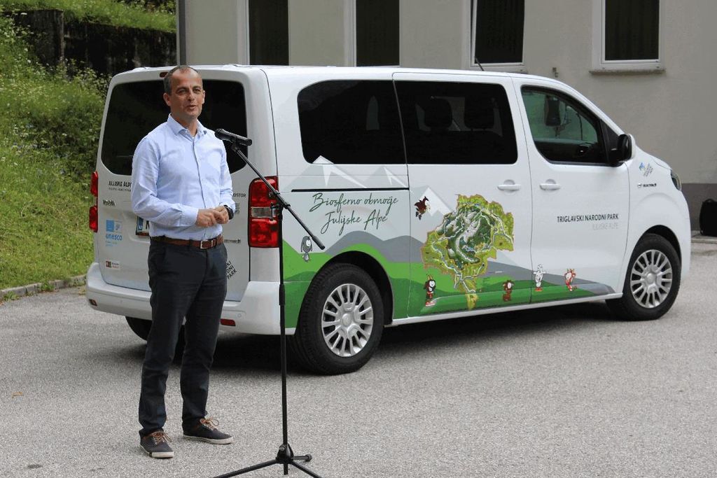 Trajnostna mobilnost je eno izmed prioritetnih področij delovanja Javnega zavoda Triglavski narodni park (JZ TNP), predvsem kot podpora domačinom na tistih lokacijah, kjer je javni potniški promet izredno omejen oziroma ne obstaja, pa tudi z usmerjanjem obiska. V okviru podpore parkovnim lokalnim skupnostim pri uresničevanju naložb in razvoju ukrepov, ki spodbujajo k rabi trajnostne mobilnosti ter hkrati pripomorejo k boljši kakovosti življenja lokalnega prebivalstva, je JZ TNP v okviru sredstev Podnebnega sklada – trajnostna mobilnost 2022-2023 izvedel nakup električnega kombi vozila Toyota Proace Verso EV Shuttle kombi za prevoz potnikov v lokalni skupnosti. Včeraj so predstavniki JZ TNP vozilo predali v brezplačno uporabo Občini Bovec.