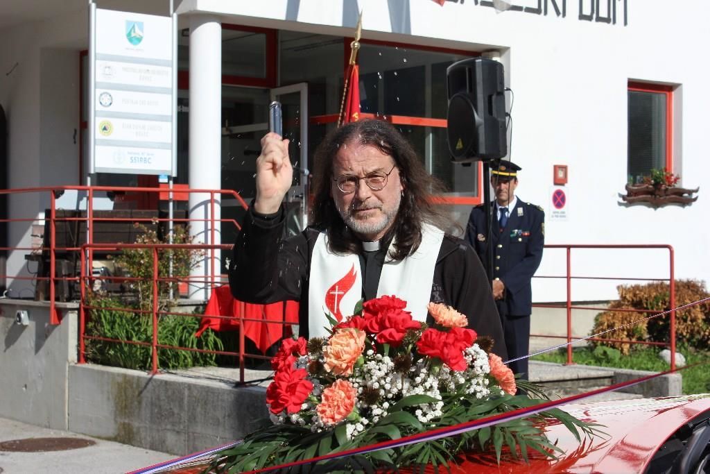 Sledila je predaja zahval vsem zaslužnim za izpeljavo projekta, nato pa še predaja ključev. Vozila je blagoslovil bovški župnik in dekan Viljem Čušin